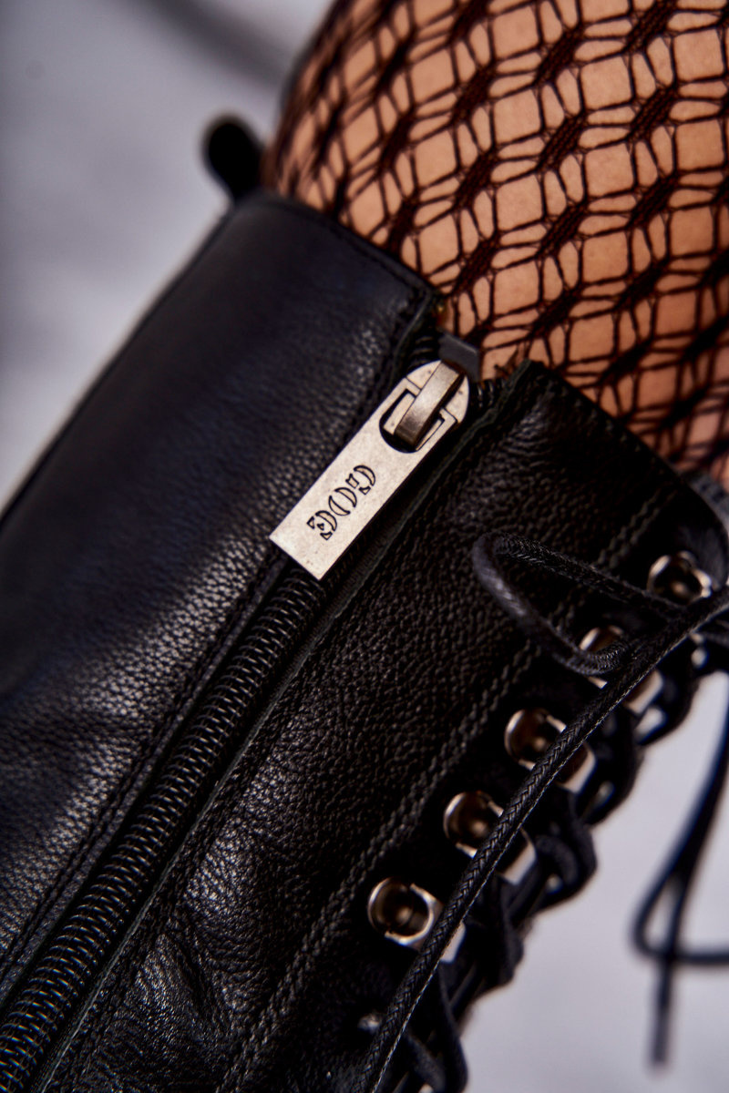 Świetne, wysokie botki damskie od marki GOE to MUST HAVE tego sezonu! Wykonane z naturalnej skóry z usztywnianym zapiętkiem. Model ten jest sznurowany oraz zapinany z boku cholewki na suwak. Buty zostały osadzone na płaskim obcasie i masywnej platformie. Niezwykle stabilny model. Posiadają ocieplenie w postaci koca obuwniczego. Wkładka wykonana z eko skóry jest miękka i wygodna. Przy wyborze rozmiaru prosimy sugerować się tabelą rozmiarów.