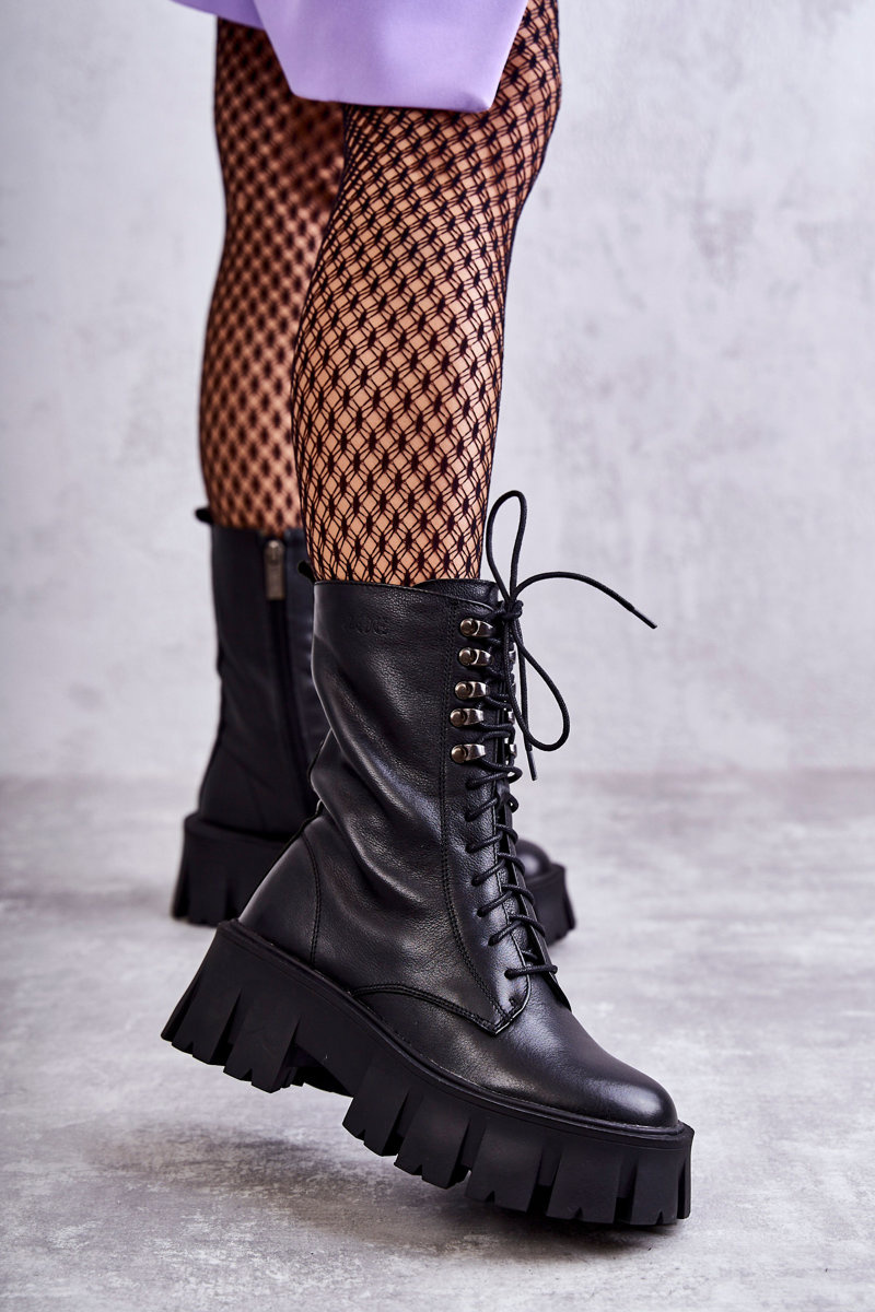 Skórzane Ocieplane Botki GOE KK2N4013 Czarne