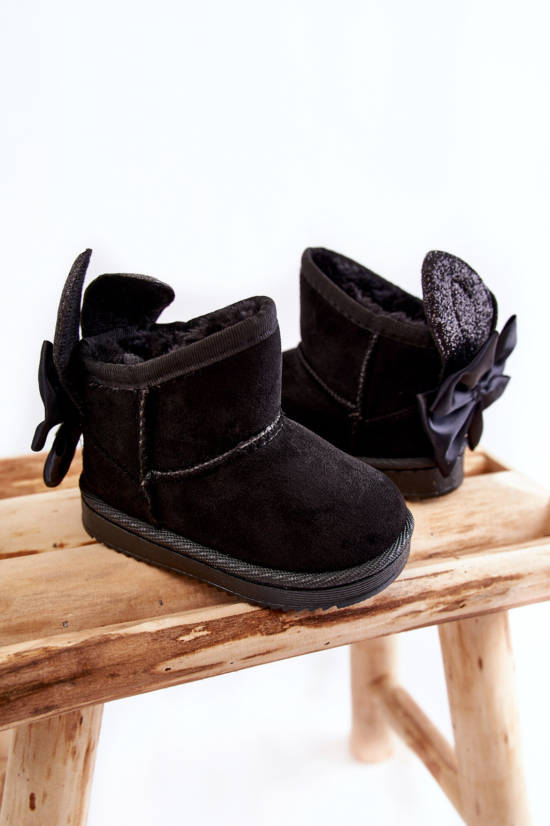 Podczas chłodnych dni warto zadbać o wygodne obuwie. Idealnym wyborem do zimowych zabaw będą urocze śniegowce na delikatnej platformie. Grube ocieplenie w postaci miękkiego futerka przyjemnie otuli stopy Twojej pociechy. Duża kokarda oraz błyszczące uszy z tyłu nadają całości niezwykle dziewczęcy charakter. Twoje dziecko będzie zachwycone tym modelem! Przy wyborze rozmiaru prosimy kierować tabelą rozmiarów.