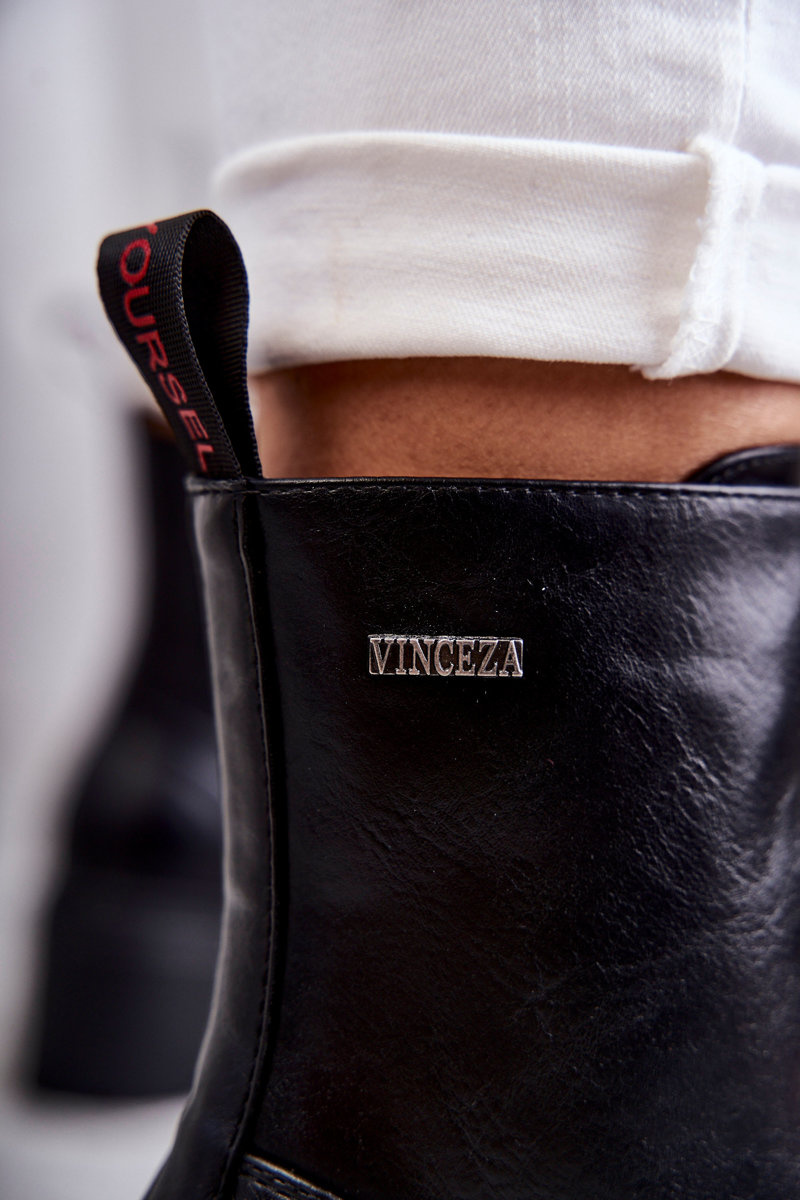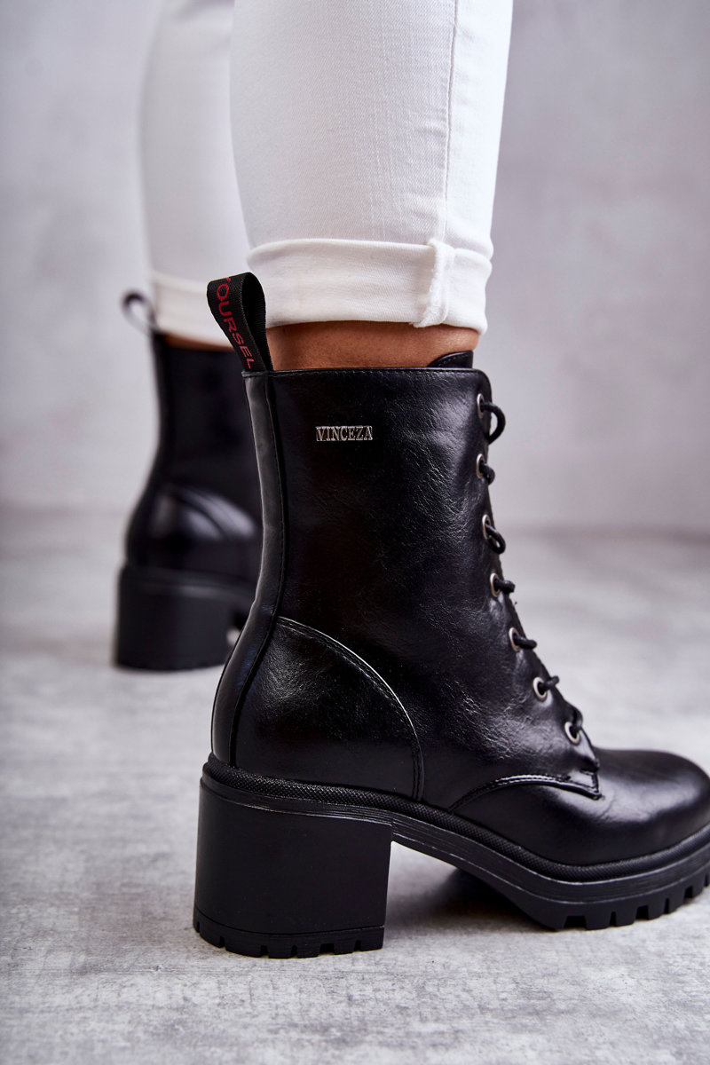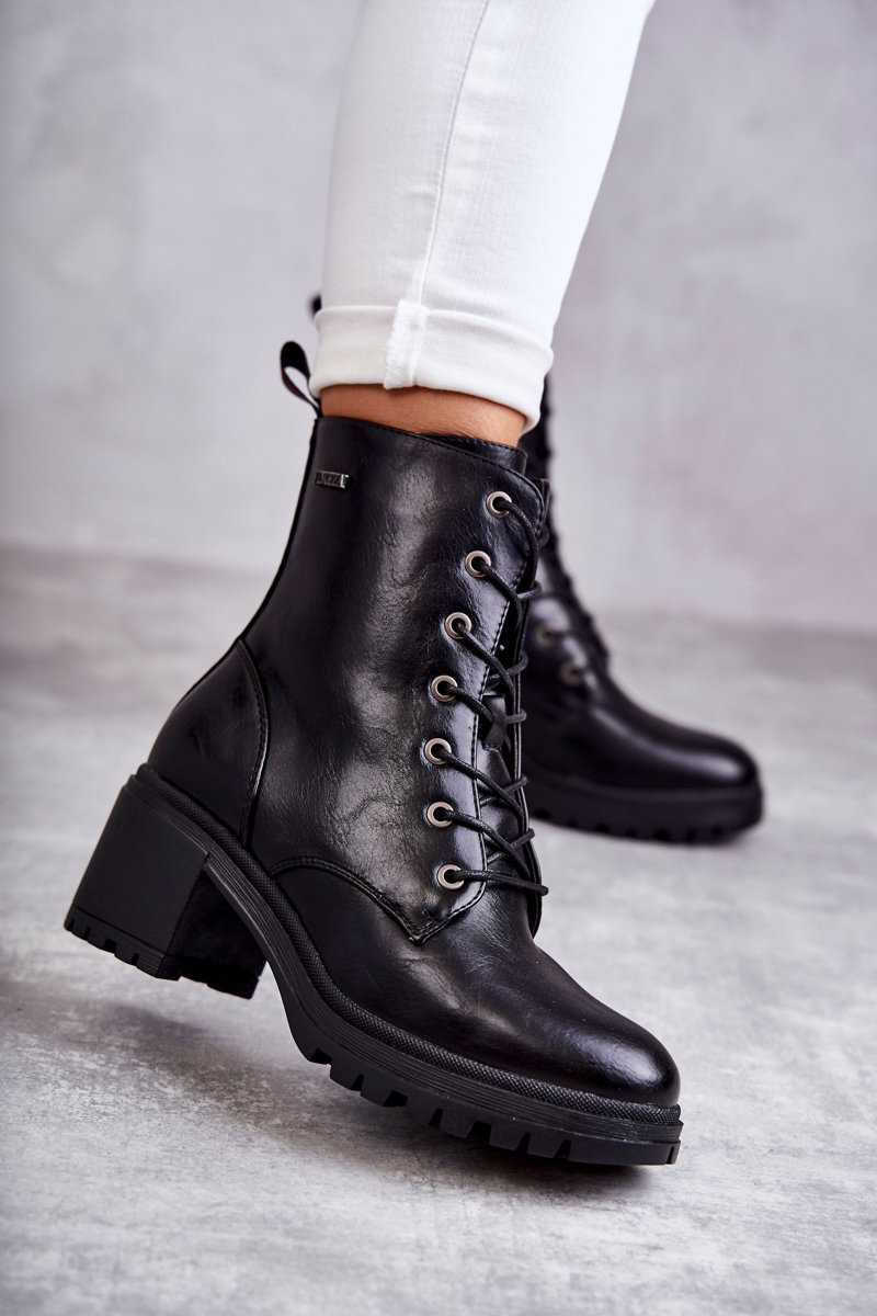 Damskie Ocieplane Botki Na Obcasie Czarne Grethe