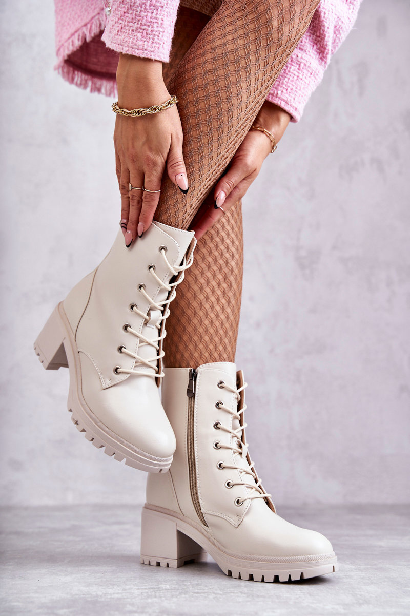 Damskie Ocieplane Botki Na Obcasie Jasny Beż Grethe