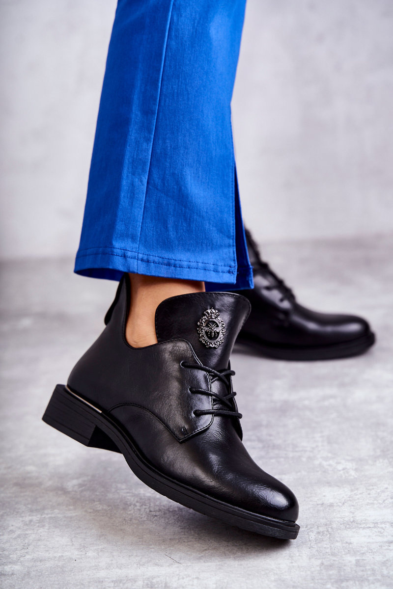 Skórzane Sznurowane Botki Z Wycięciami Czarne Fabiana