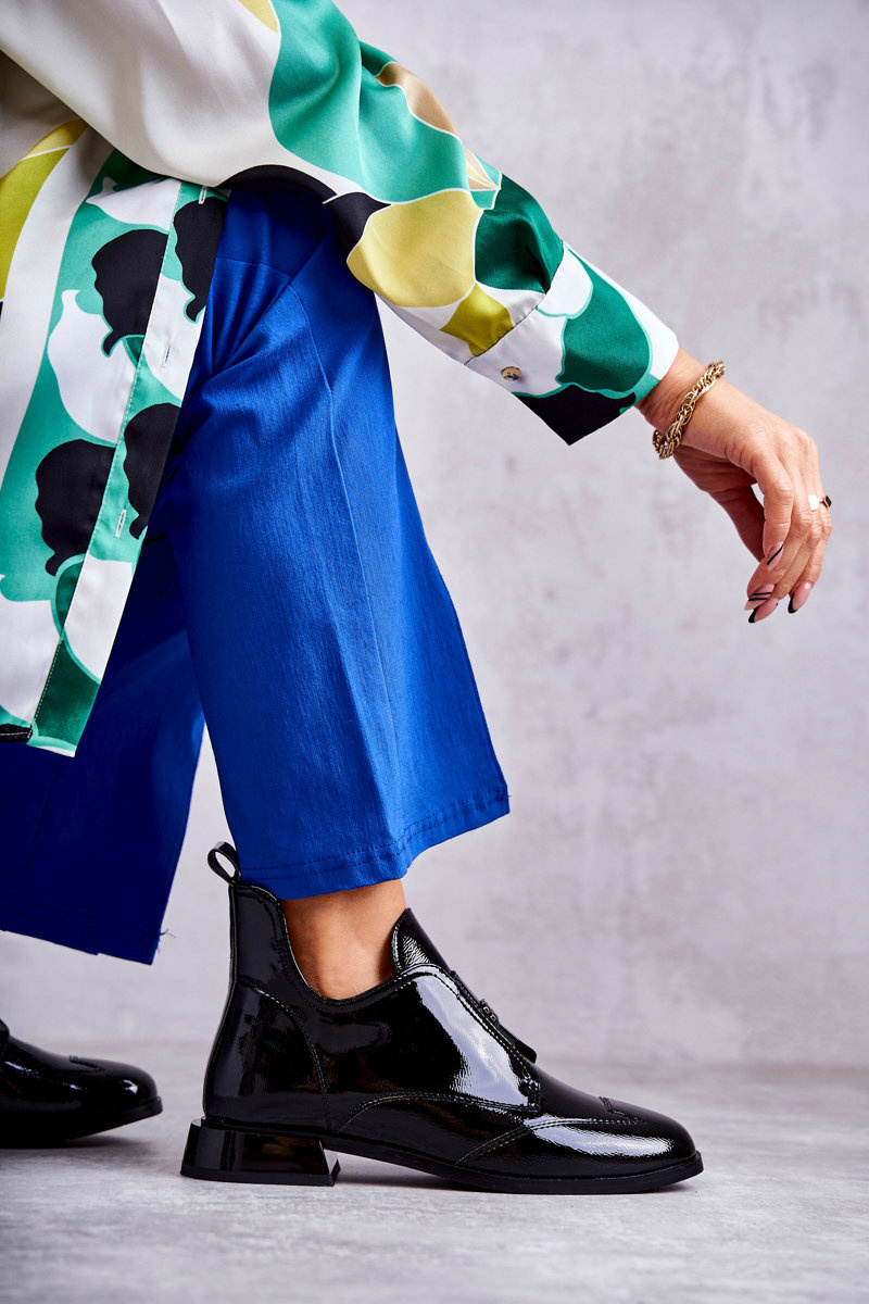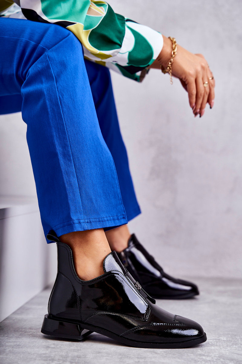 Lakierowane Niskie Botki Na Suwak Czarne Bettina