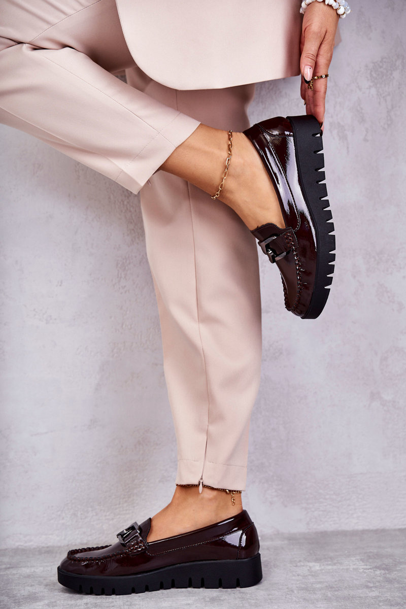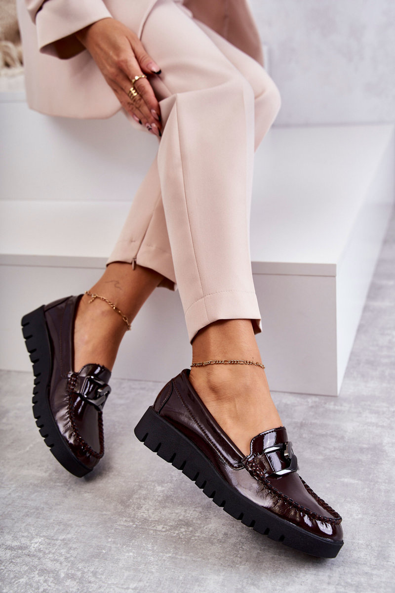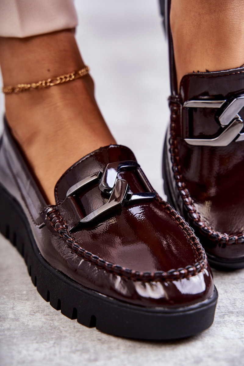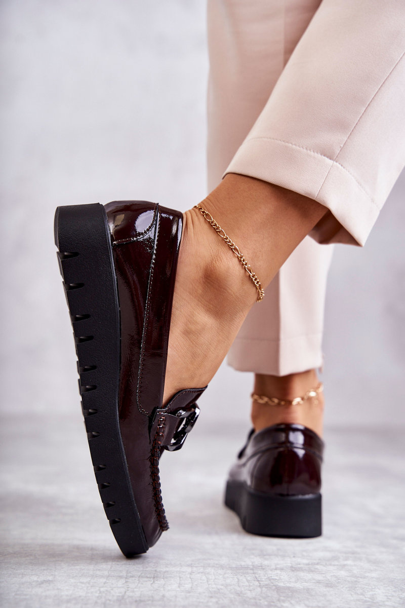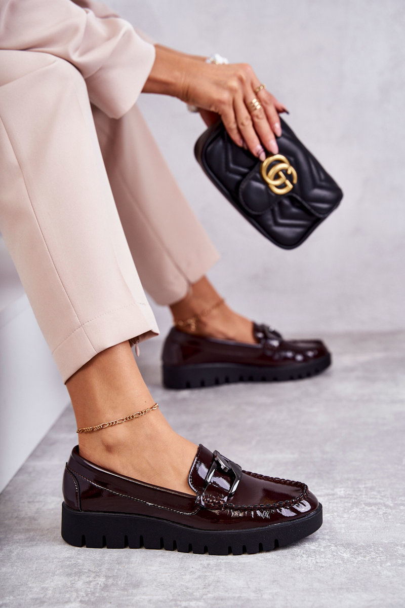 Lakierowane Półbuty Loafery Na Platformie Bordowe Kjersti