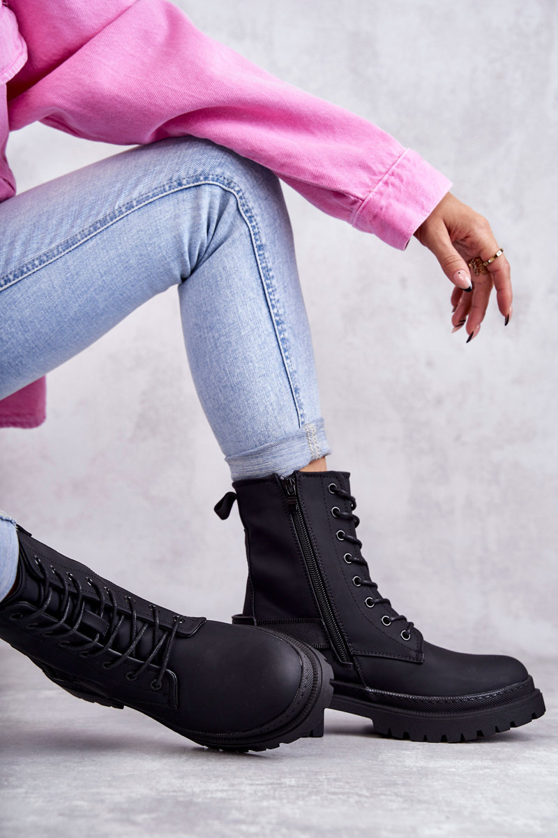 Damskie Botki Ocieplane Na Suwak Czarne Fabiola