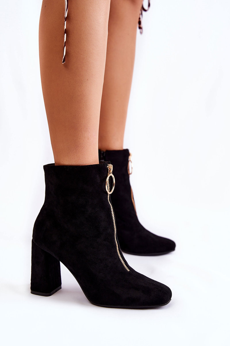 Zamszowe Botki Na Obcasie Z Ozdobnym Zamkiem Czarne Lisette