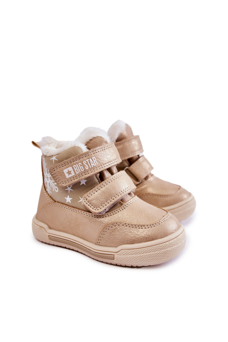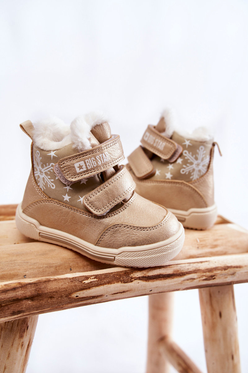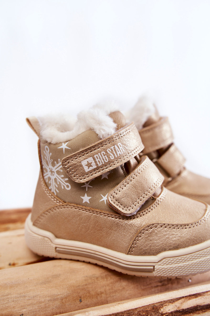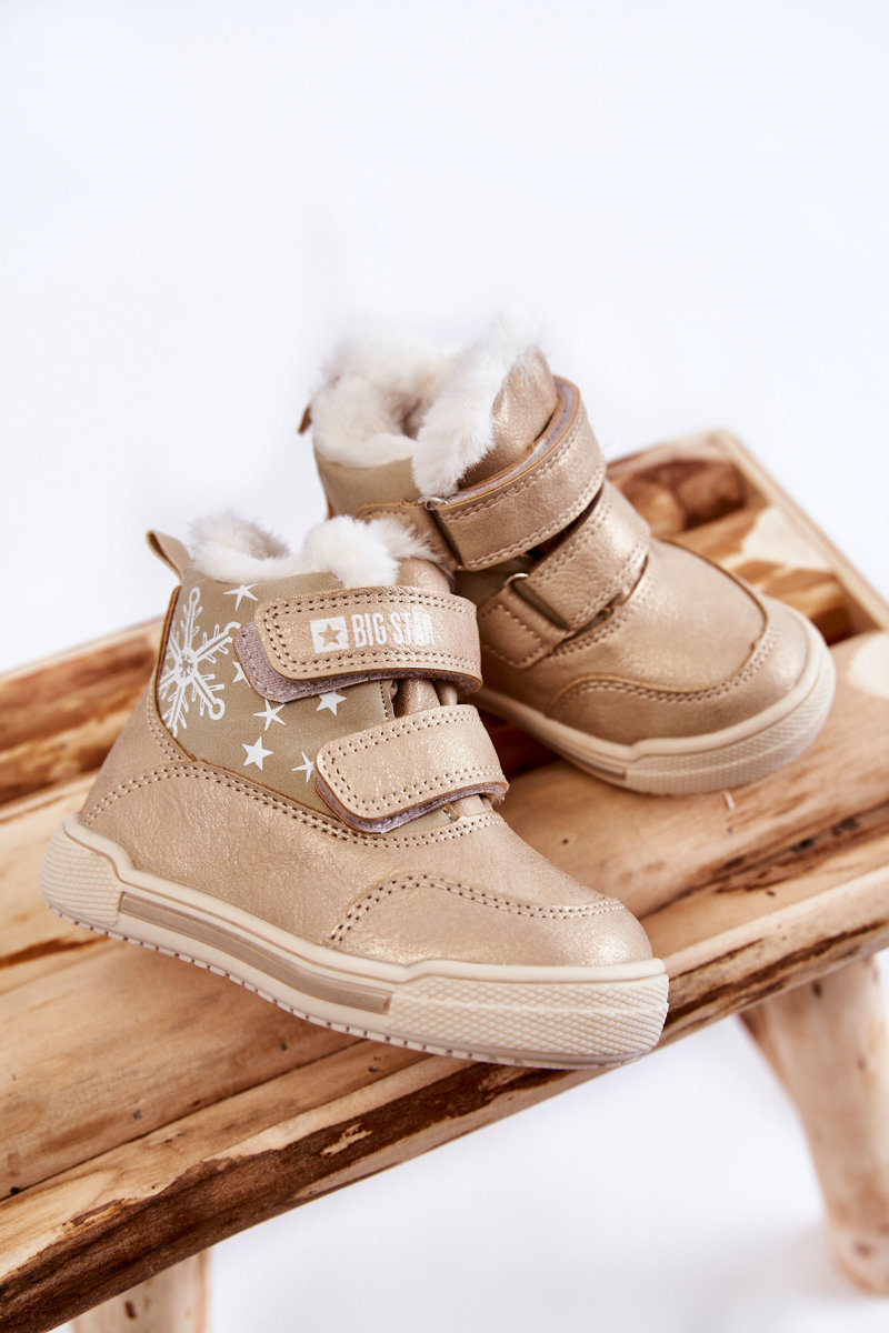 Dziecięce Ocieplane Botki Na Rzepy Big Star KK374189 Beżowo-Złote