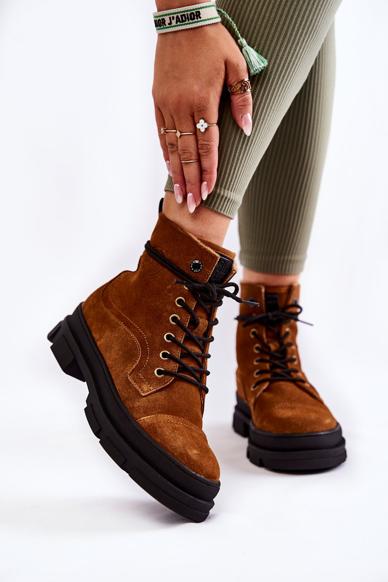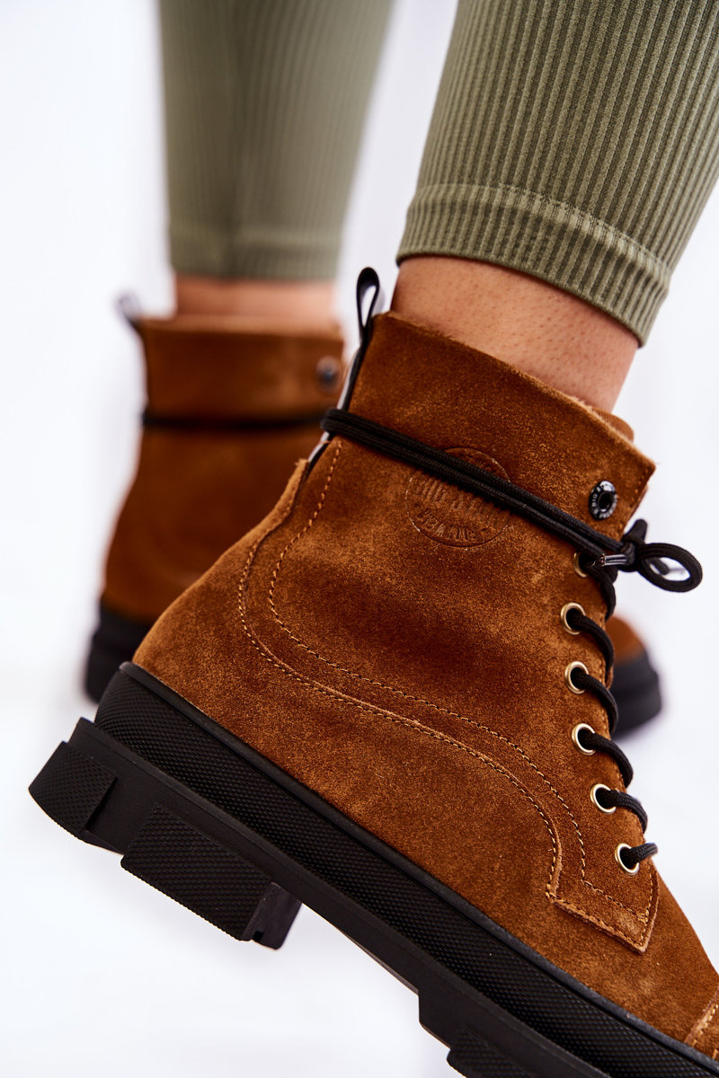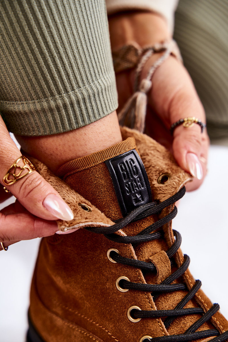 Zamszowe Ocieplane Botki Trapery Big Star KK274524 Brązowe