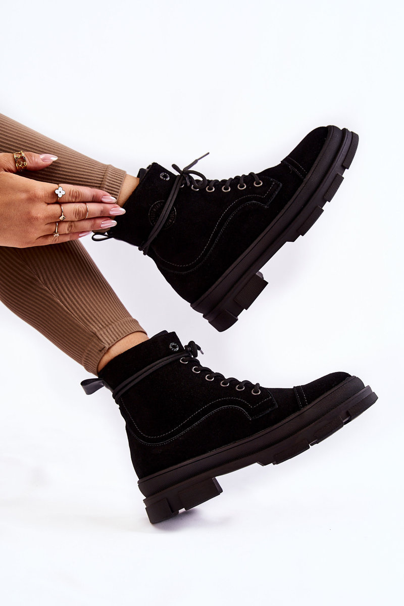 Zamszowe Ocieplane Botki Trapery Big Star KK274525 Czarne