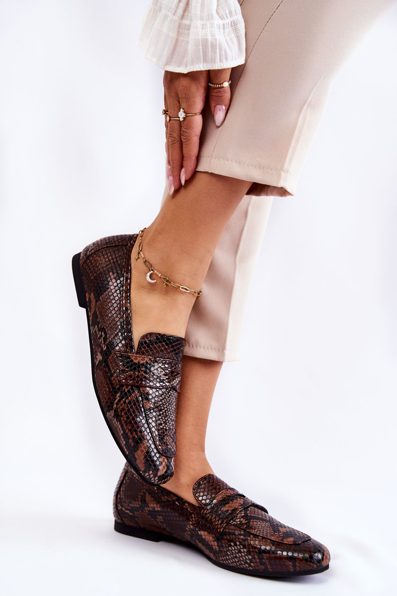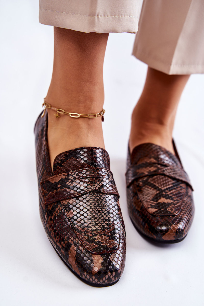 Skórzane Wężowe Mokasyny La.Fi 210023BR-XS Brązowe