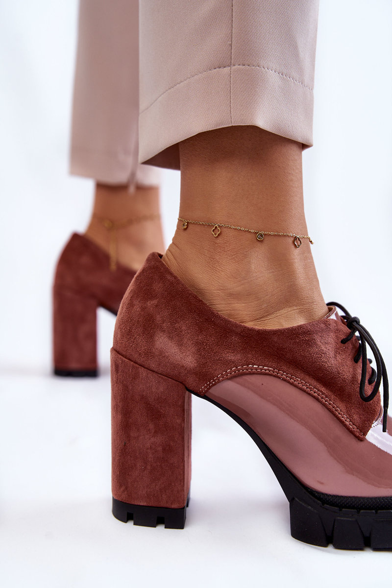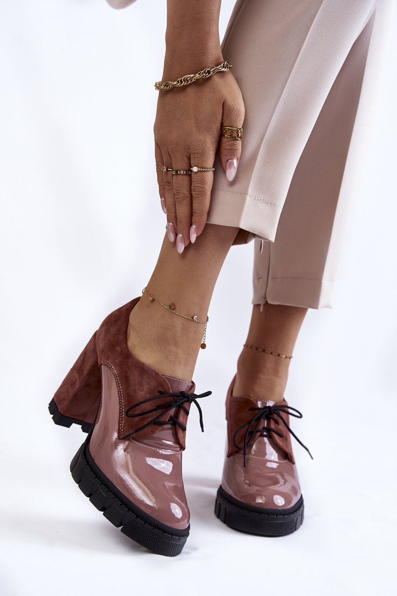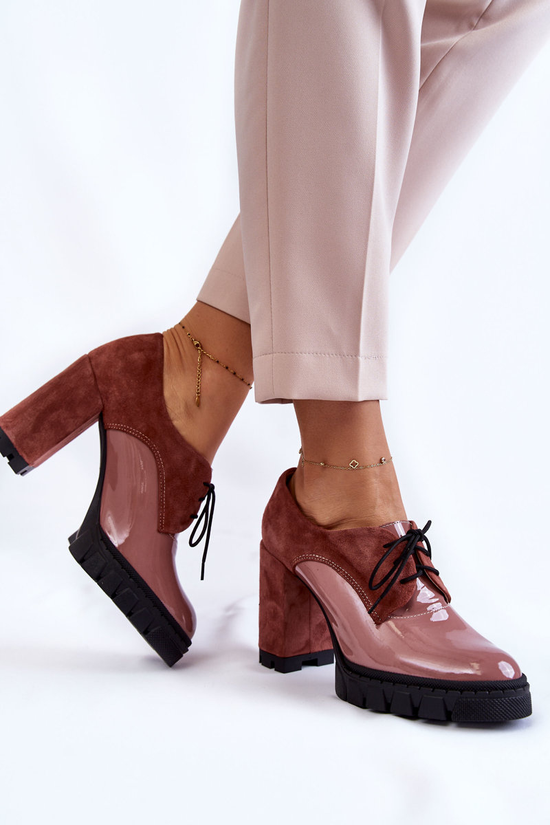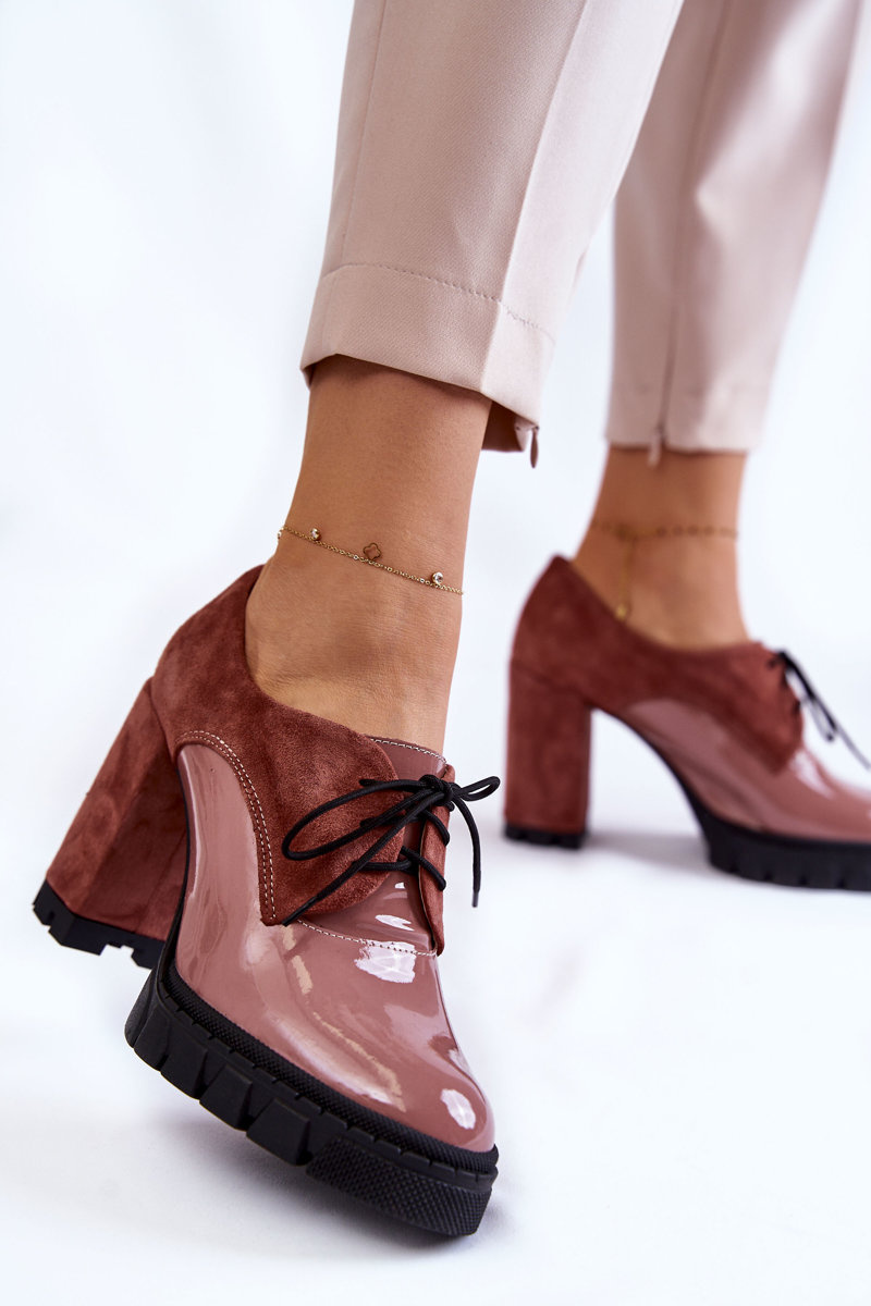 Modne Zamszowo-Lakierowane Botki Na Platformie Różowe Carisa
