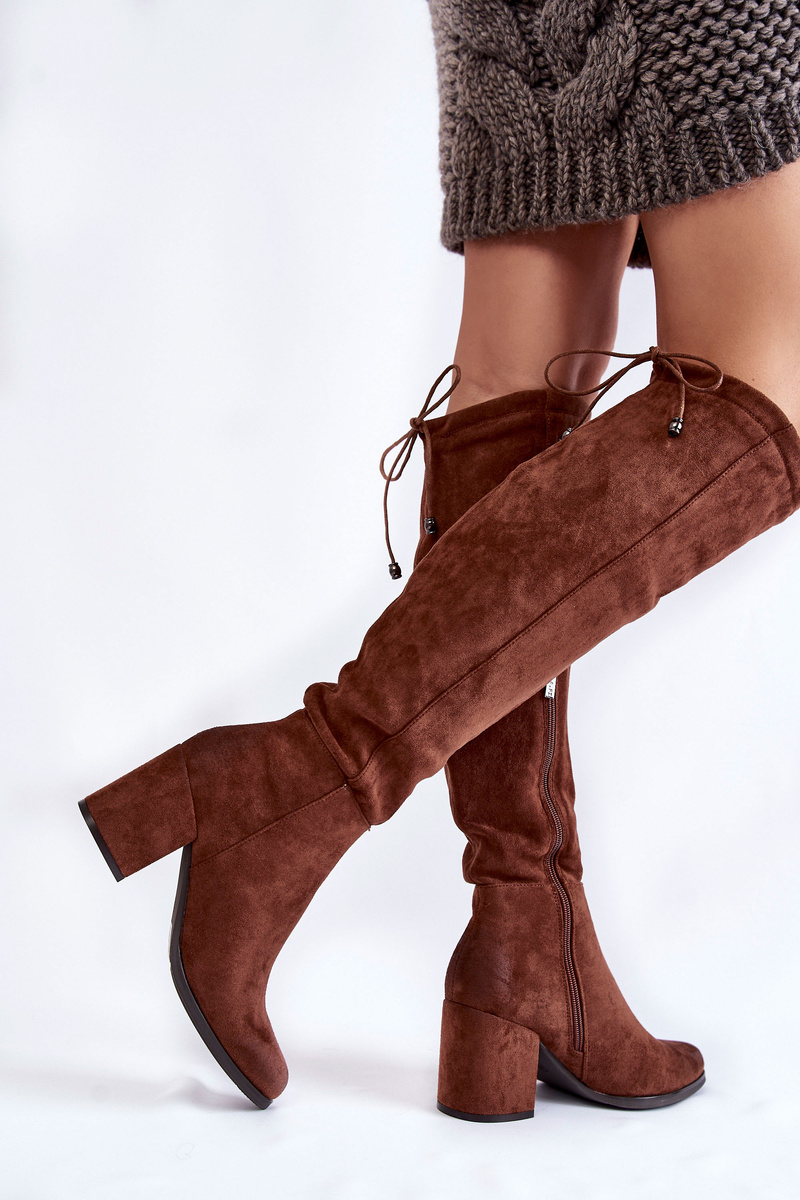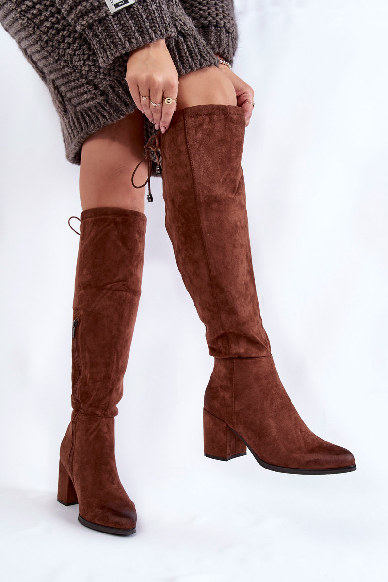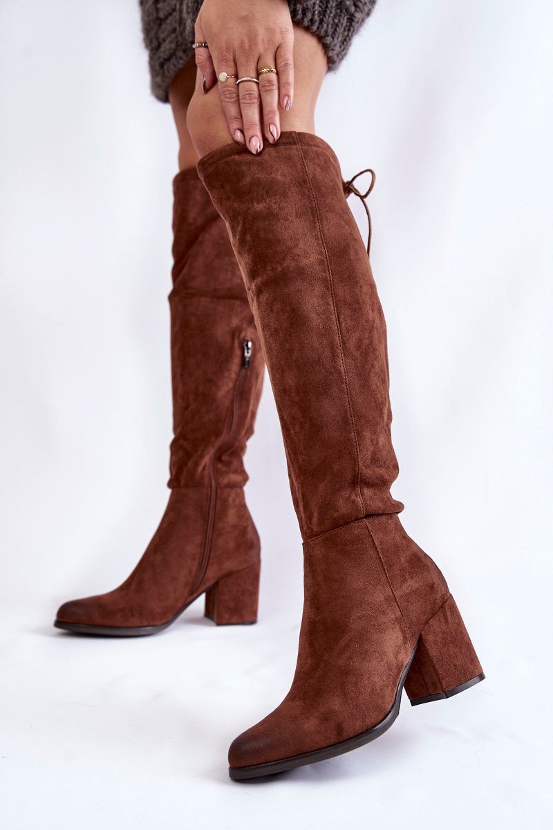 Damskie Zamszowe Kozaki Za Kolano La.Fi 270056FX-SU Ciemnobrązowe