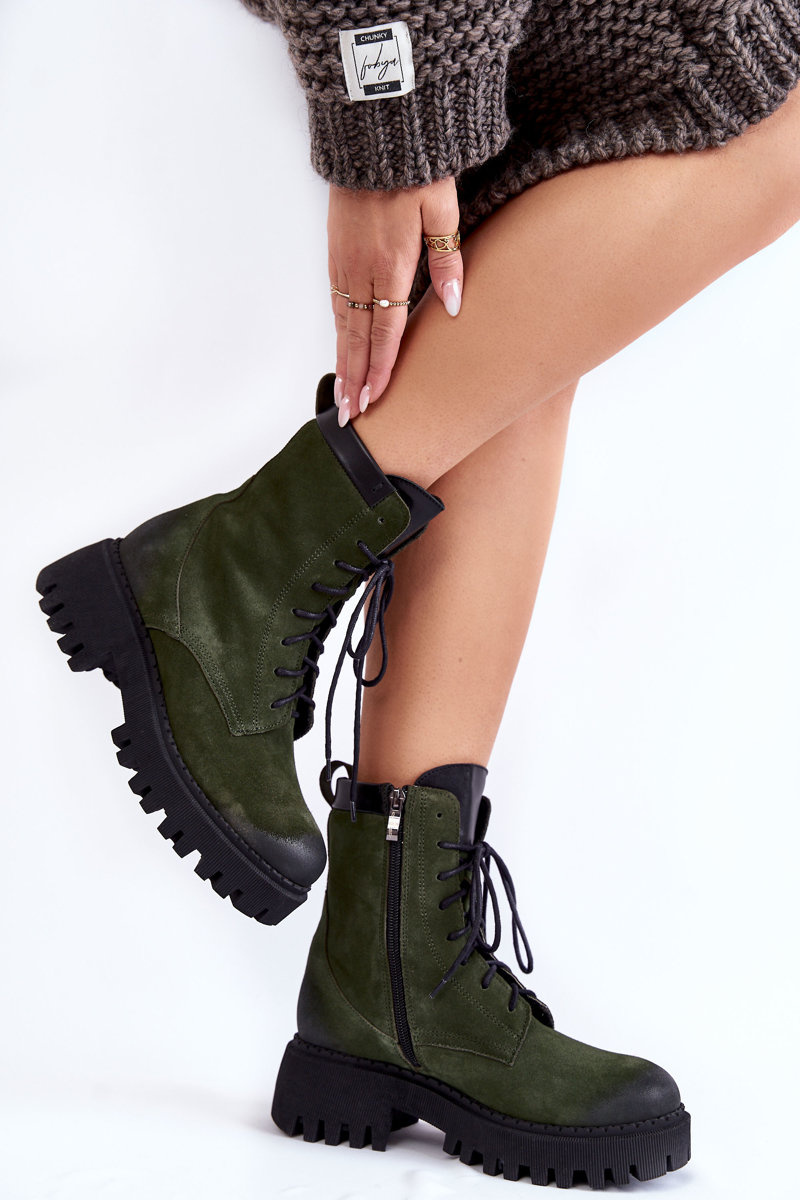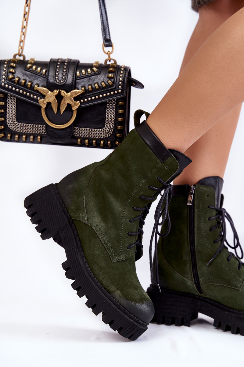 Klasyczne Zamszowe Ocieplane Botki Zielone Lemar Caima
