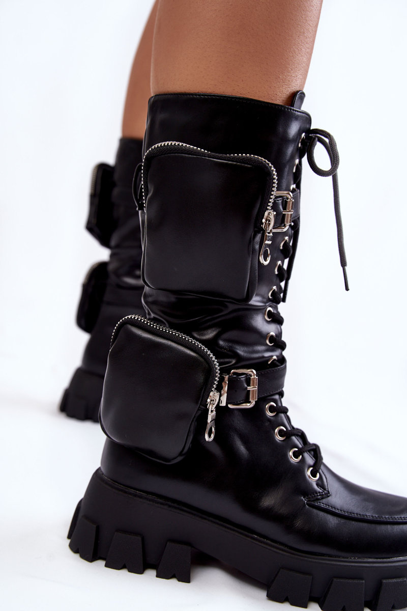 Damskie Kozaki Glany Sznurowane Z Nerkami Czarne Mirrano