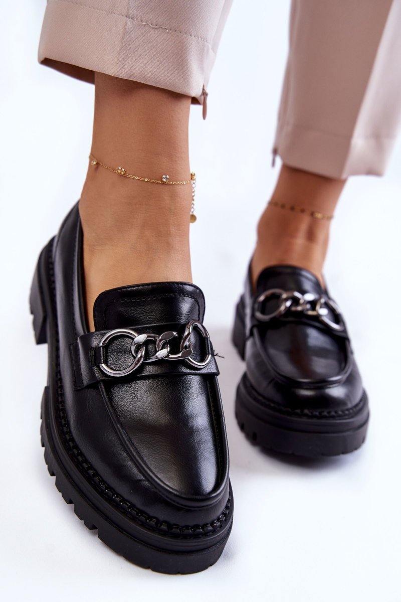 Świetne półbuty w stylu loaferów marki Laura Fiore! Buty zostały wykonane z wysokiej jakości eko skóry. Charakterystyczne zdobienie w postaci łańcucha sprawi, że stworzymy z nimi wiele niebanalnych stylizacji. Posiadają delikatną platformę oraz płaski obcas. Miękka wykonana z naturalnej skóry wkładka zadba o komfort podczas użytkowania obuwia. Przy wyborze rozmiaru prosimy sugerować się tabelą rozmiarów.