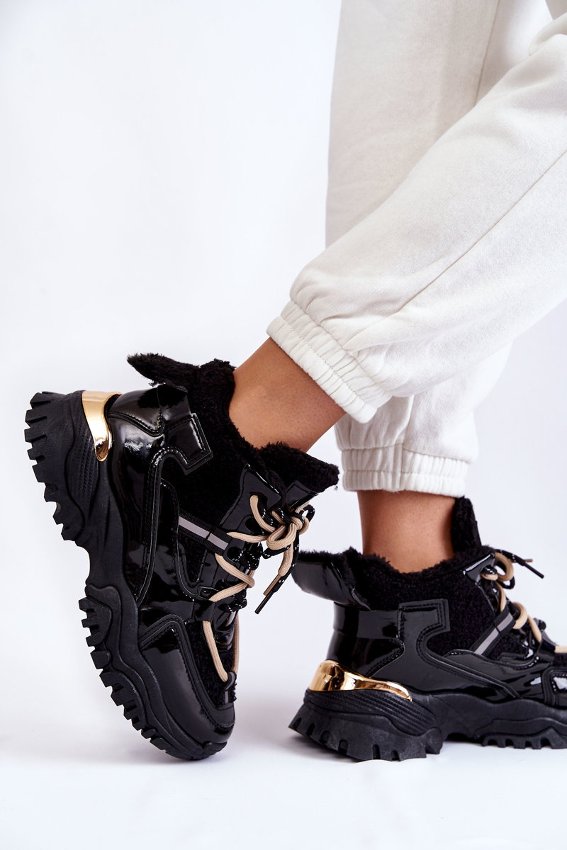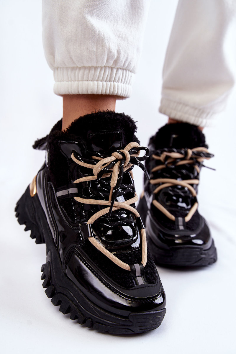 Damskie Ocieplane Buty Sportowe Trapery Czarne Edora