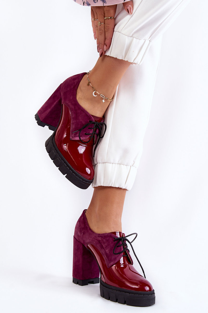 Modne Zamszowo-Lakierowane Botki Na Platformie Bordowe Carisa