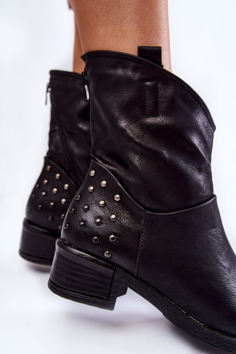 Damskie Botki Na Suwak Z Ćwiekami Czarne Lance