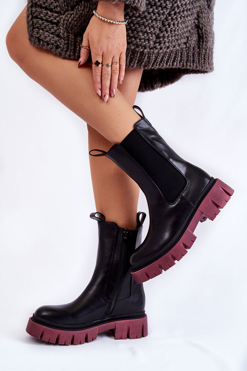 Damskie Botki Workery Na Platformie Czarno-Bordowe Aliana