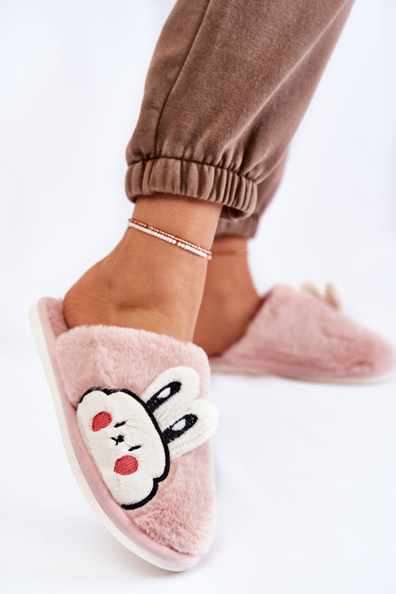Damskie Futrzane Papcie Z Królikiem Różowe Trisha