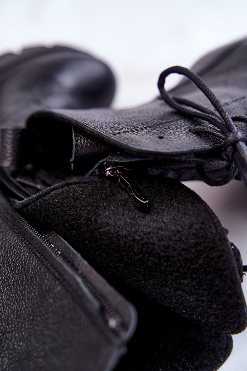 Skórzane Damskie Botki Na Obcasie Czarne Lemar Rea