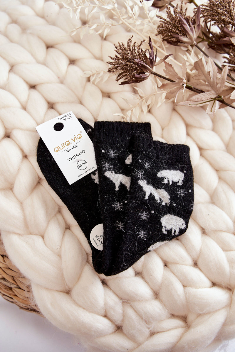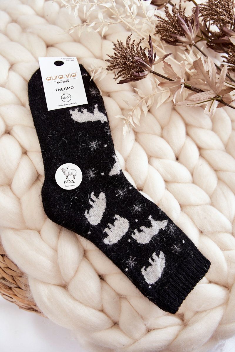 Damskie Wełniane Skarpetki W Niedźwiedzie Polarne Czarne