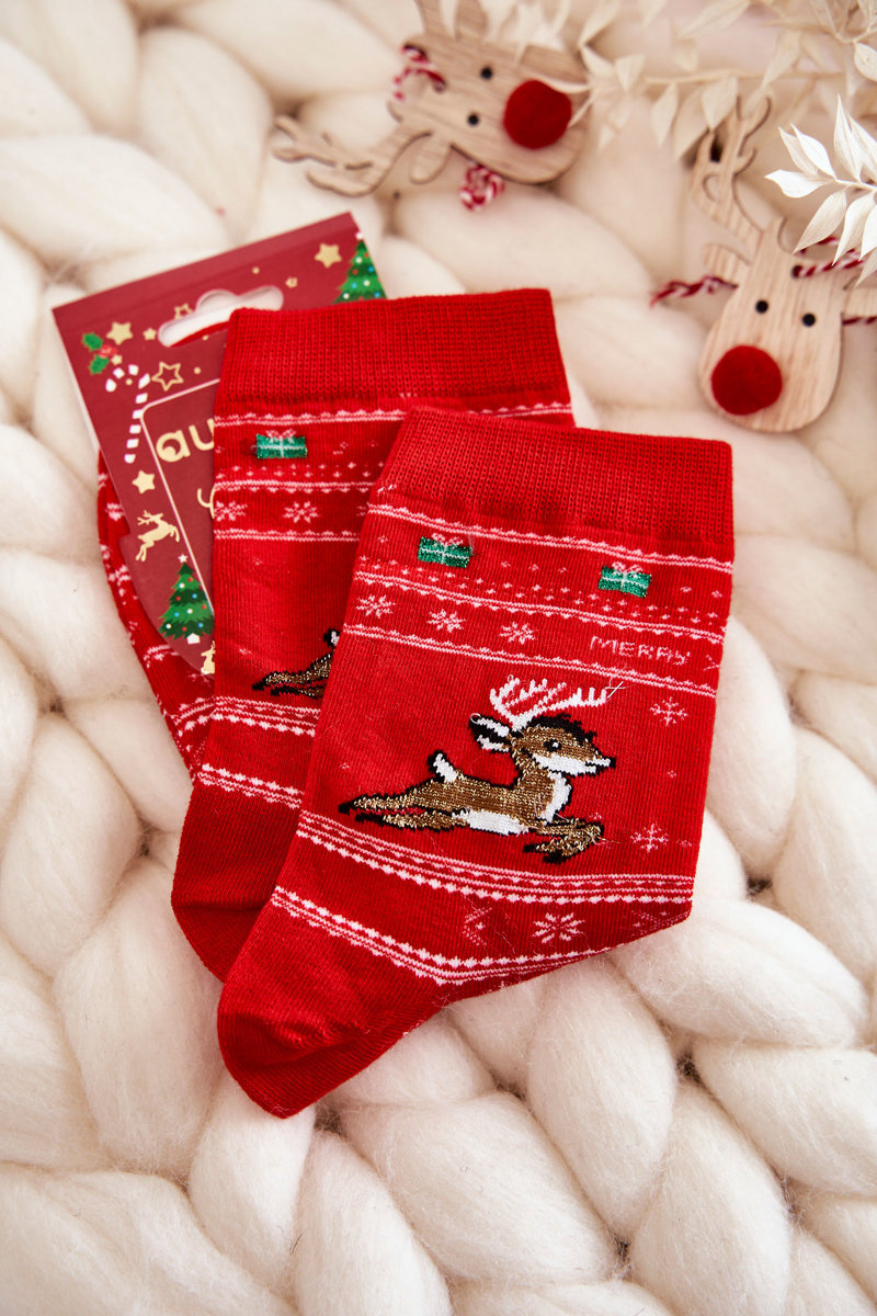 Damskie Bawełniane Świąteczne Skarpety Renifery Czerwone