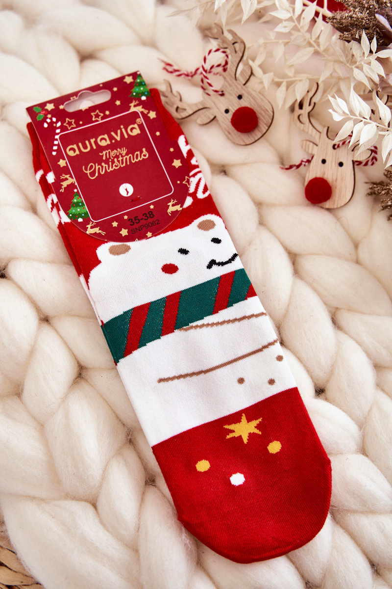 Damskie Skarpety Ze Świątecznym Wzorem W Misia Czerwone