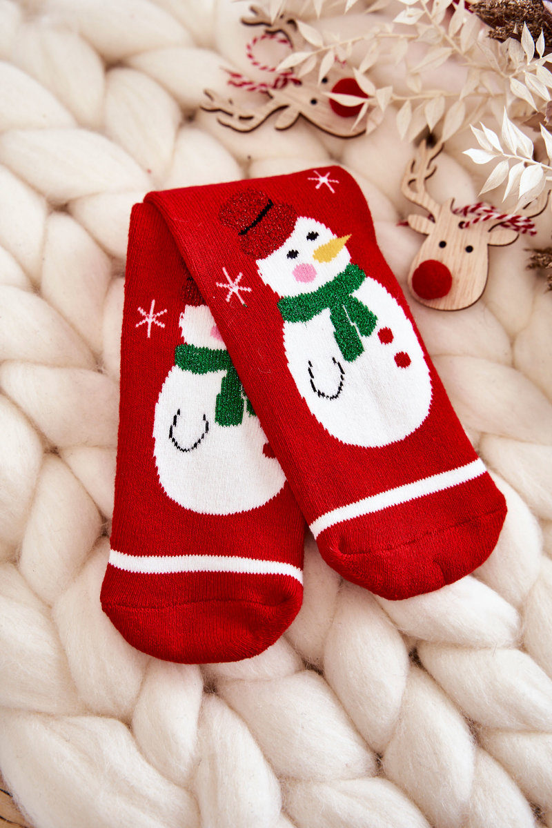 Dziecięce Termoaktywne Świąteczne Skarpety Bałwan Czerwone