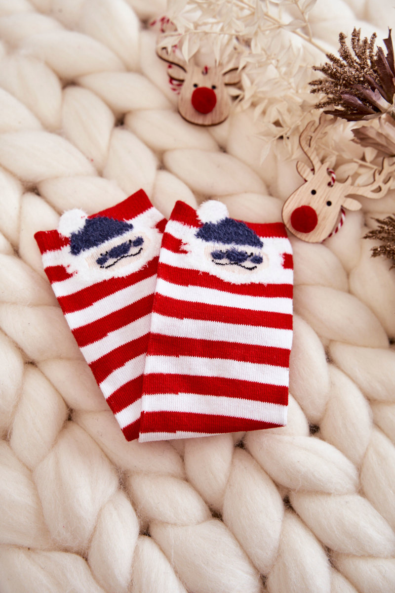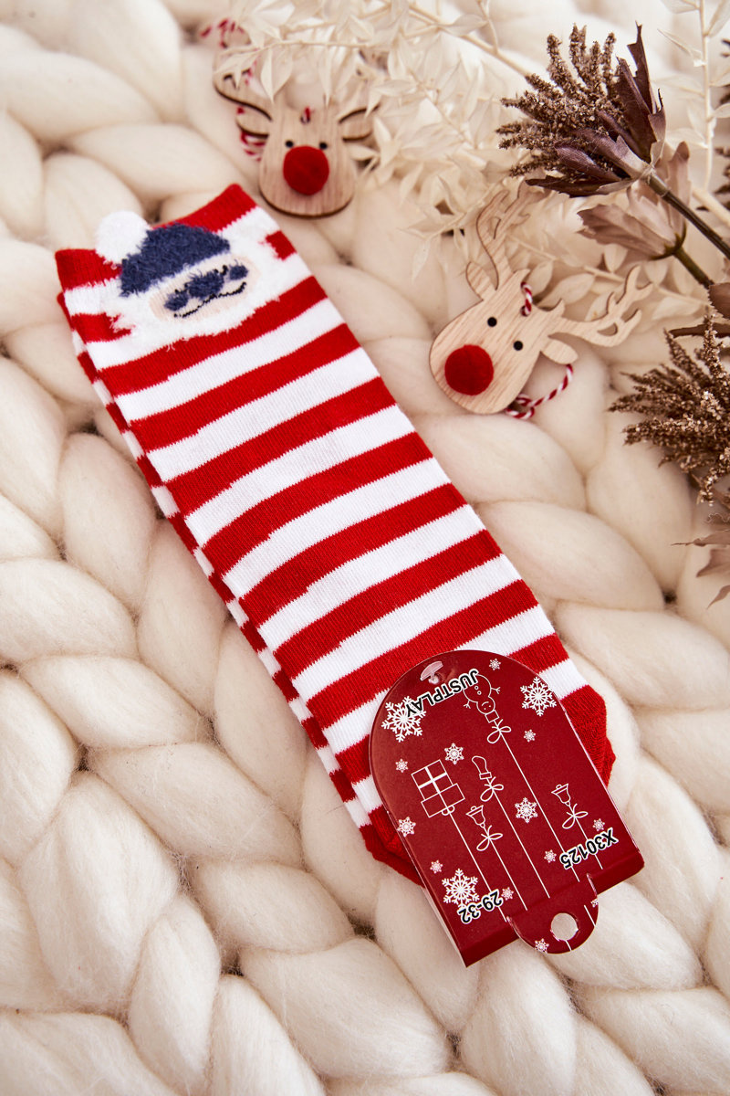 Młodzieżowe Skarpety W Paski Z Mikołajem Biało-Czerwone