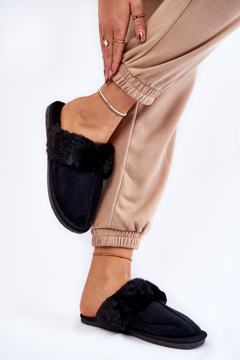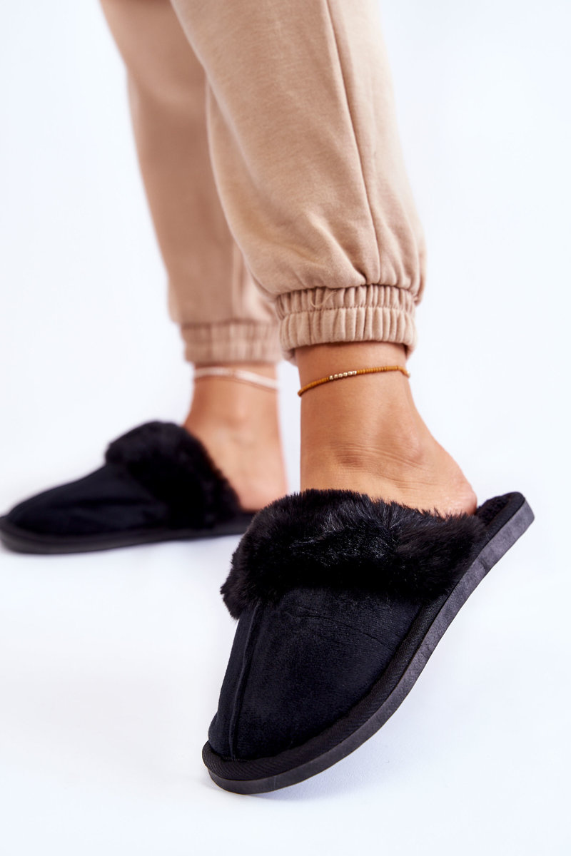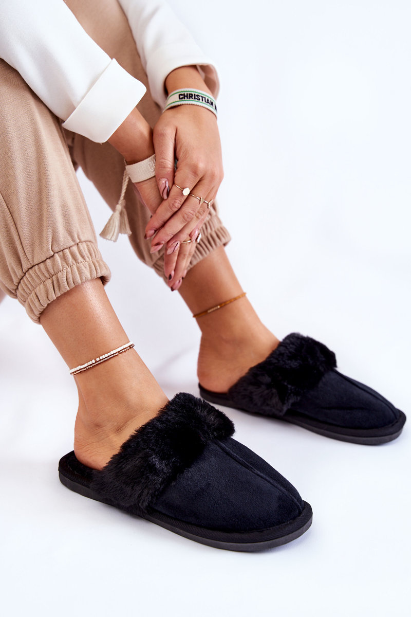Damskie Klasyczne Papcie Z Futerkiem Czarne Lorines