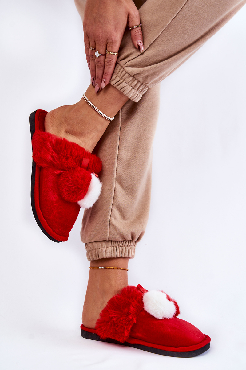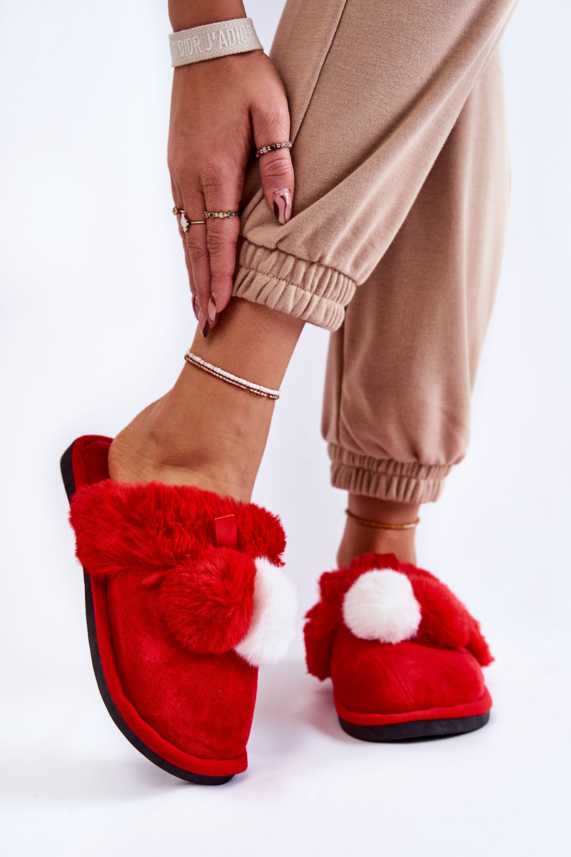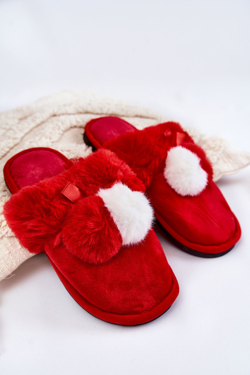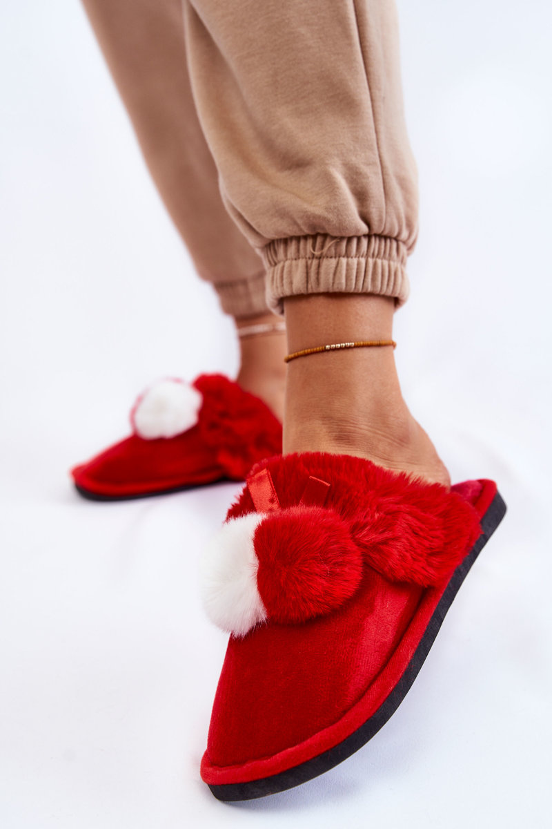 Damskie Papcie Z Pomponami I Futerkiem Czerwone Sahira