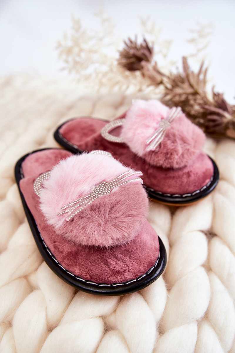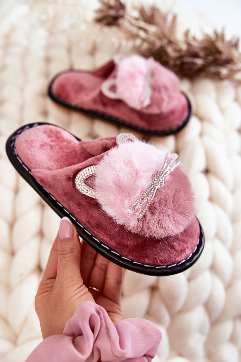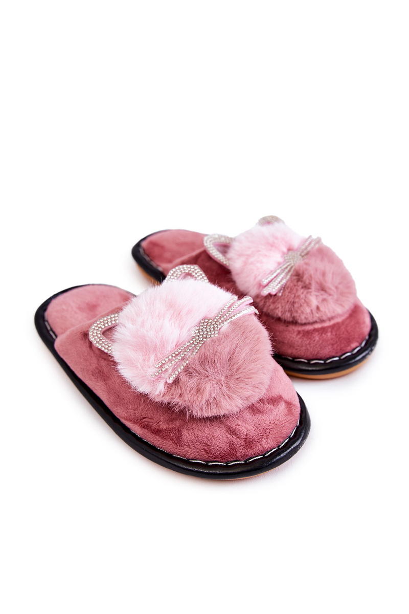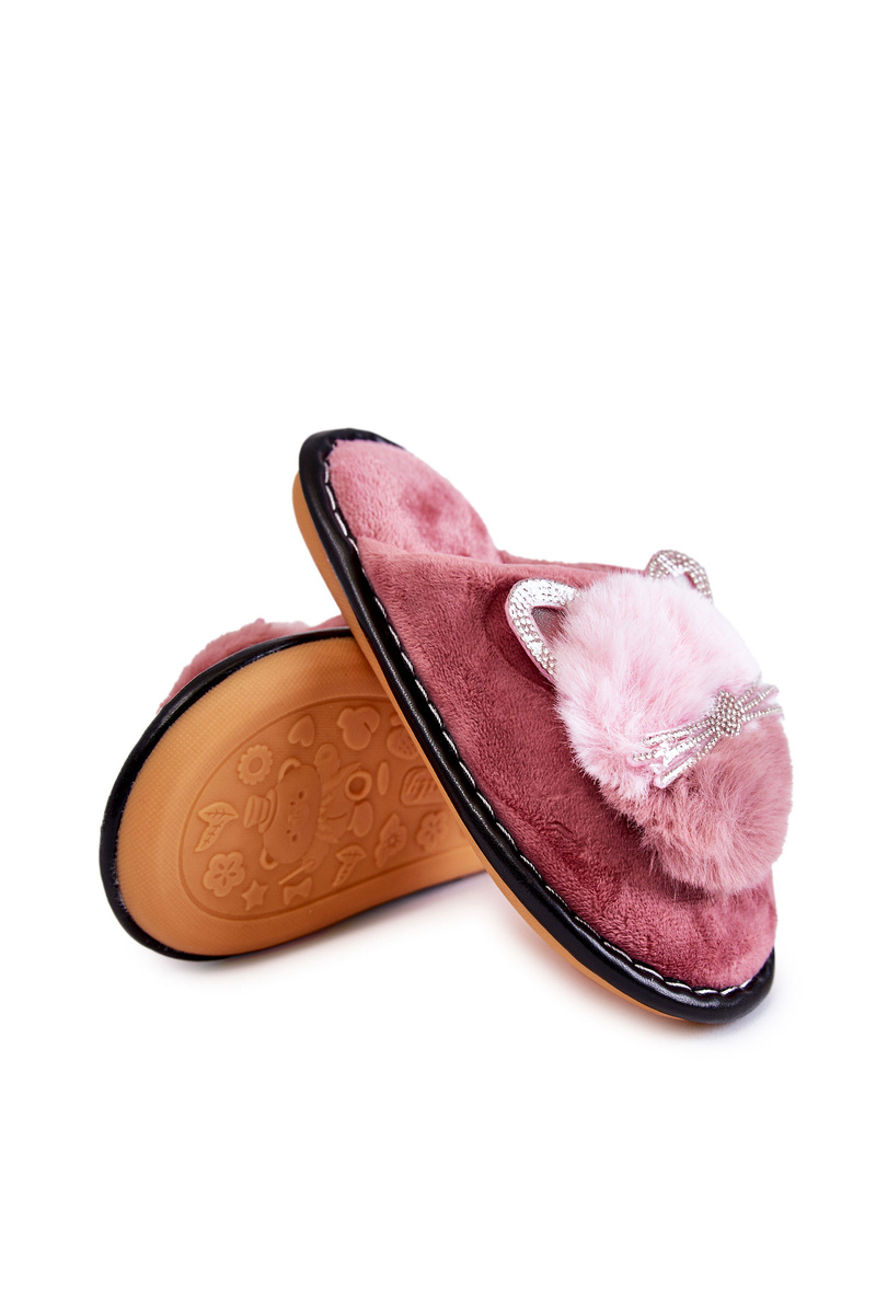Dziecięce Papcie Z Kotkiem I Cyrkoniami Ciemnoróżowe Carliss