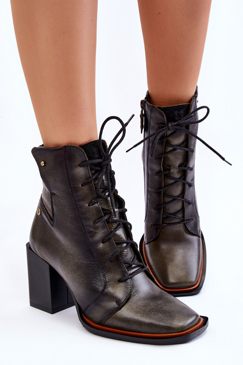 Klasyczne Skórzane Botki Sznurowane Maciejka 05667-09 Zielone