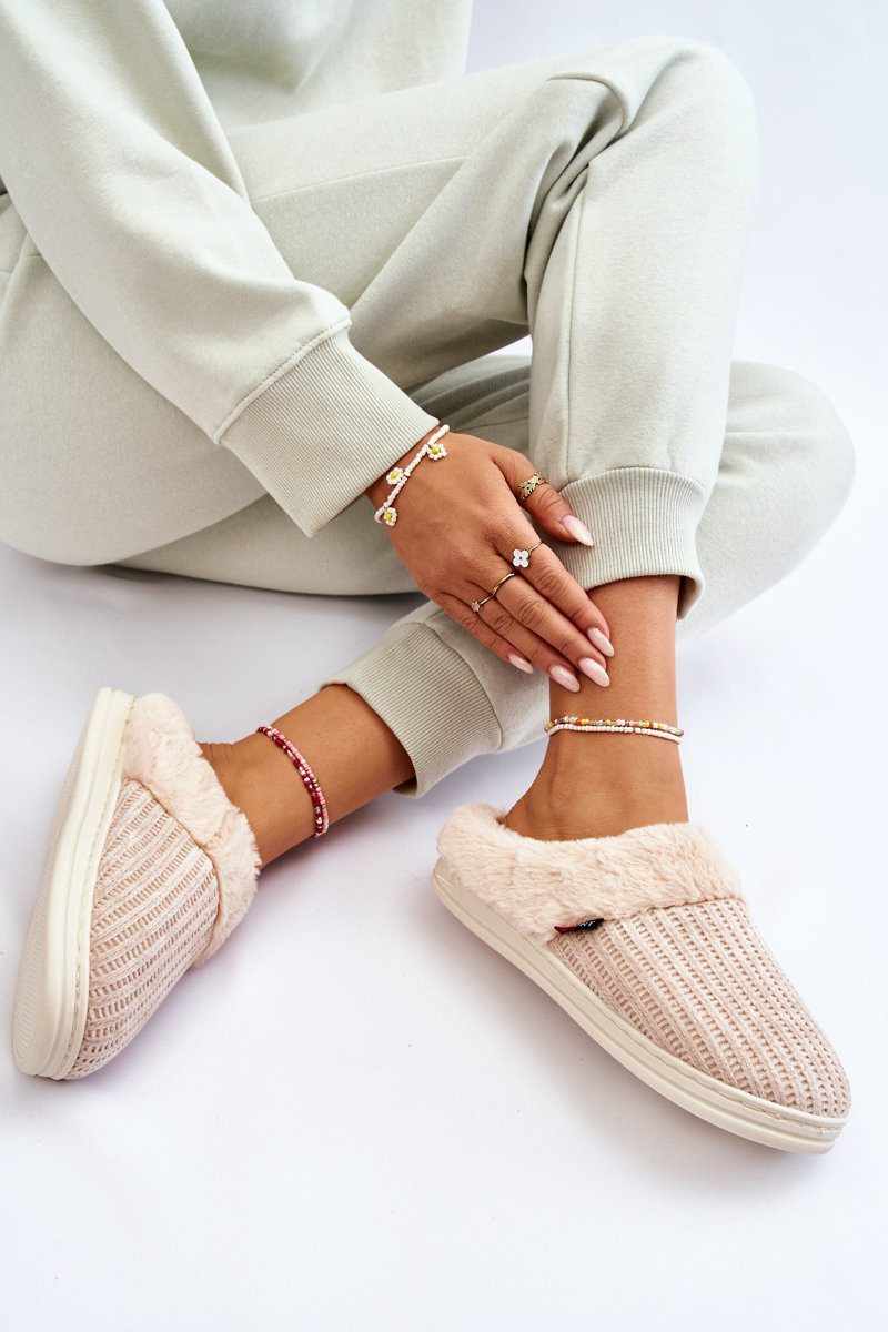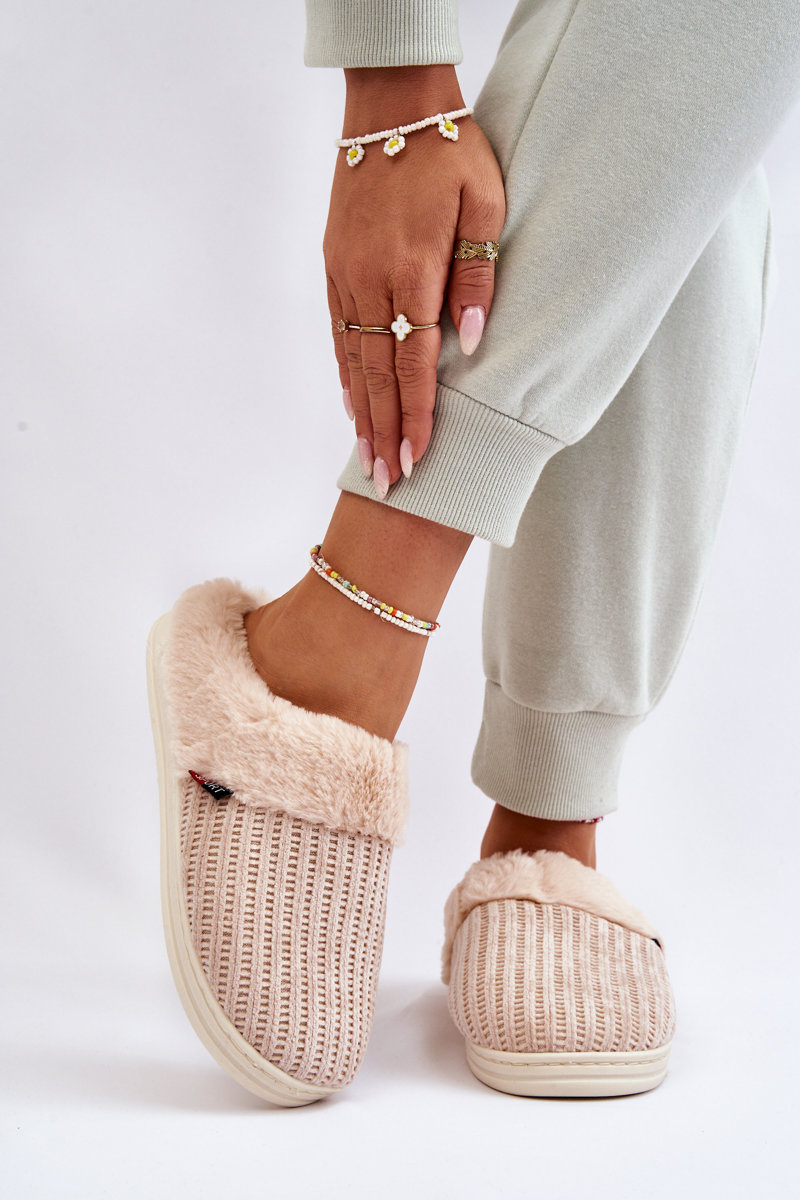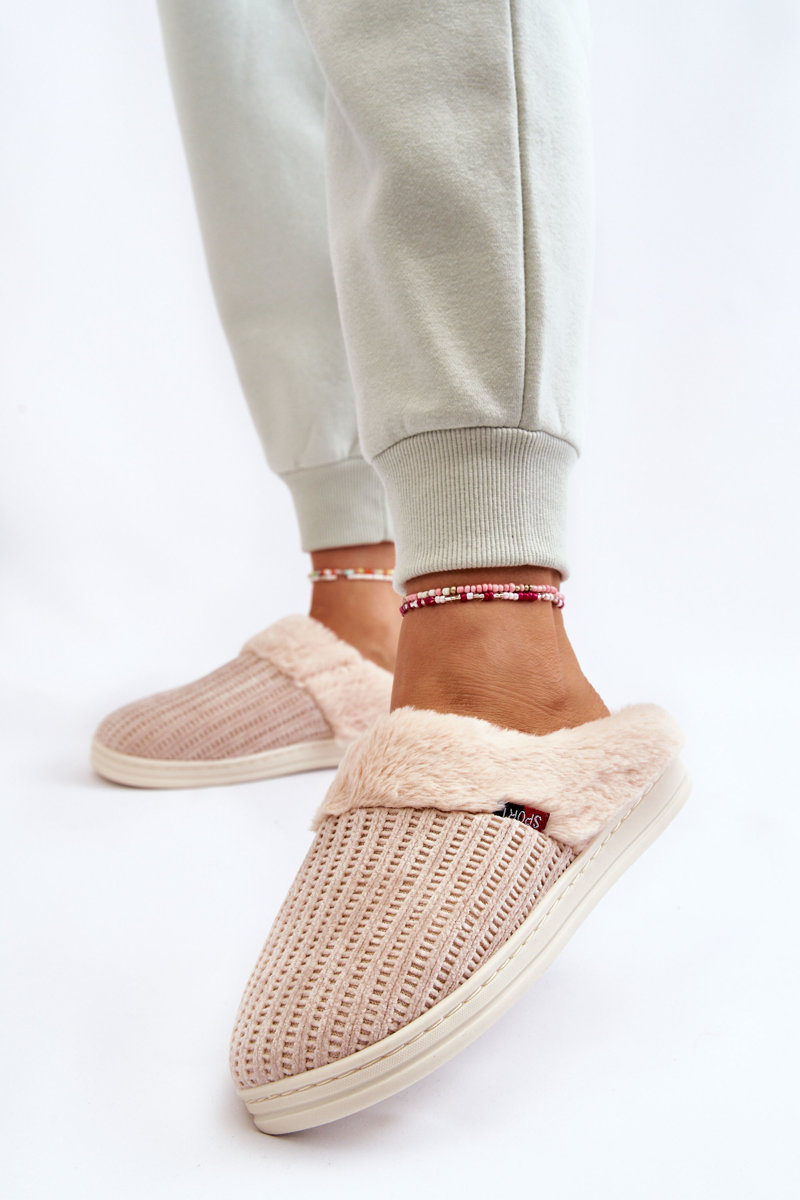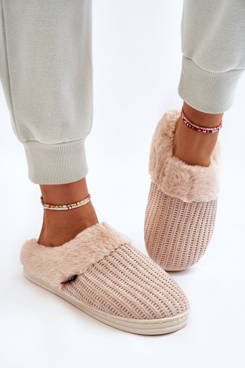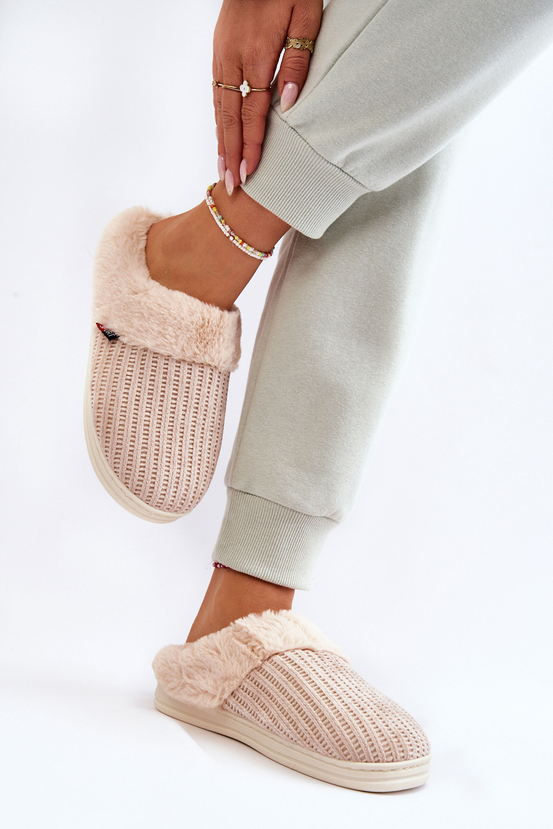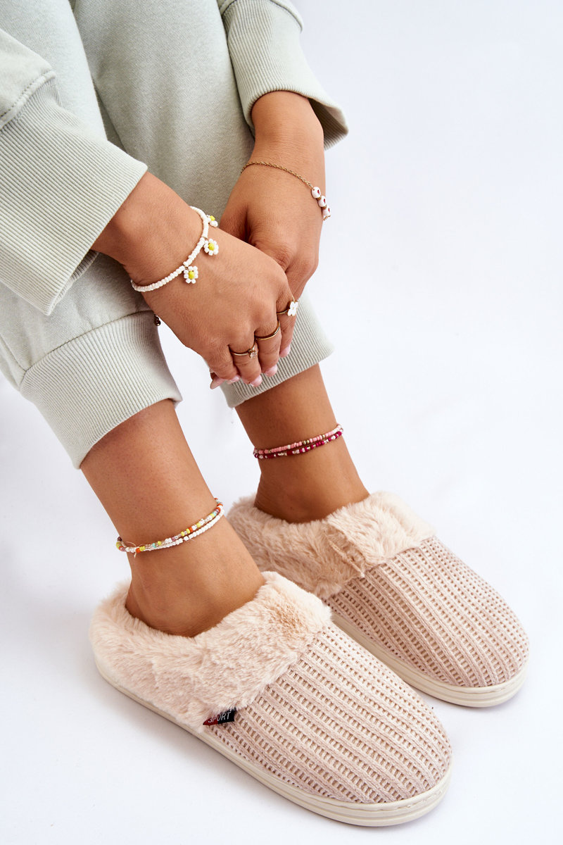 Damskie Ocieplane Papcie Wsuwane Z Futerkiem Beżowe Leriss