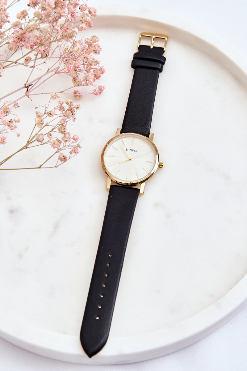 Damski Zegarek Ze Złotą Kopertą Ernest Czarny Vega