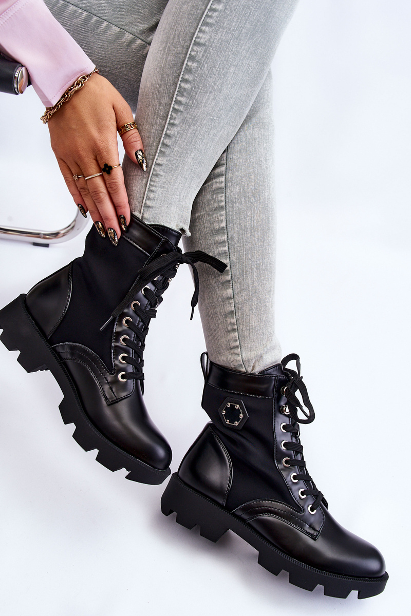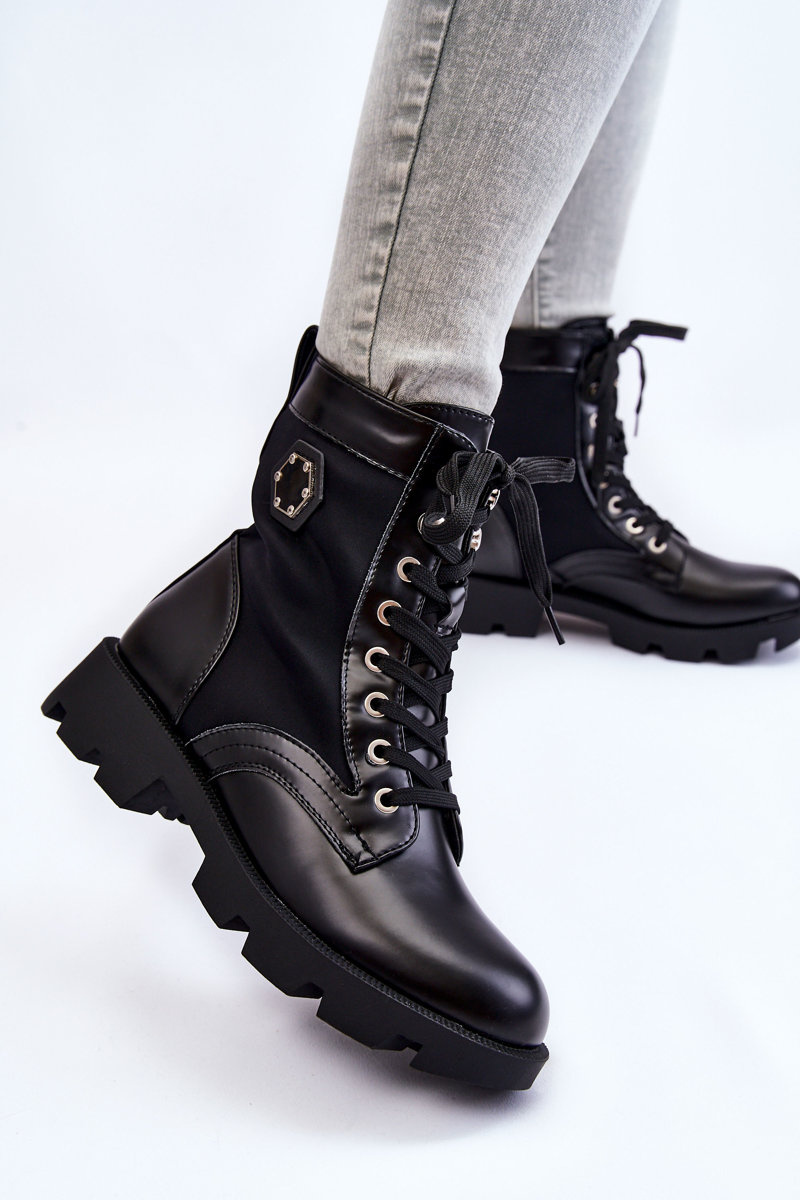 Damskie Sznurowane Botki Trapery Z Ociepleniem Czarne Nomi