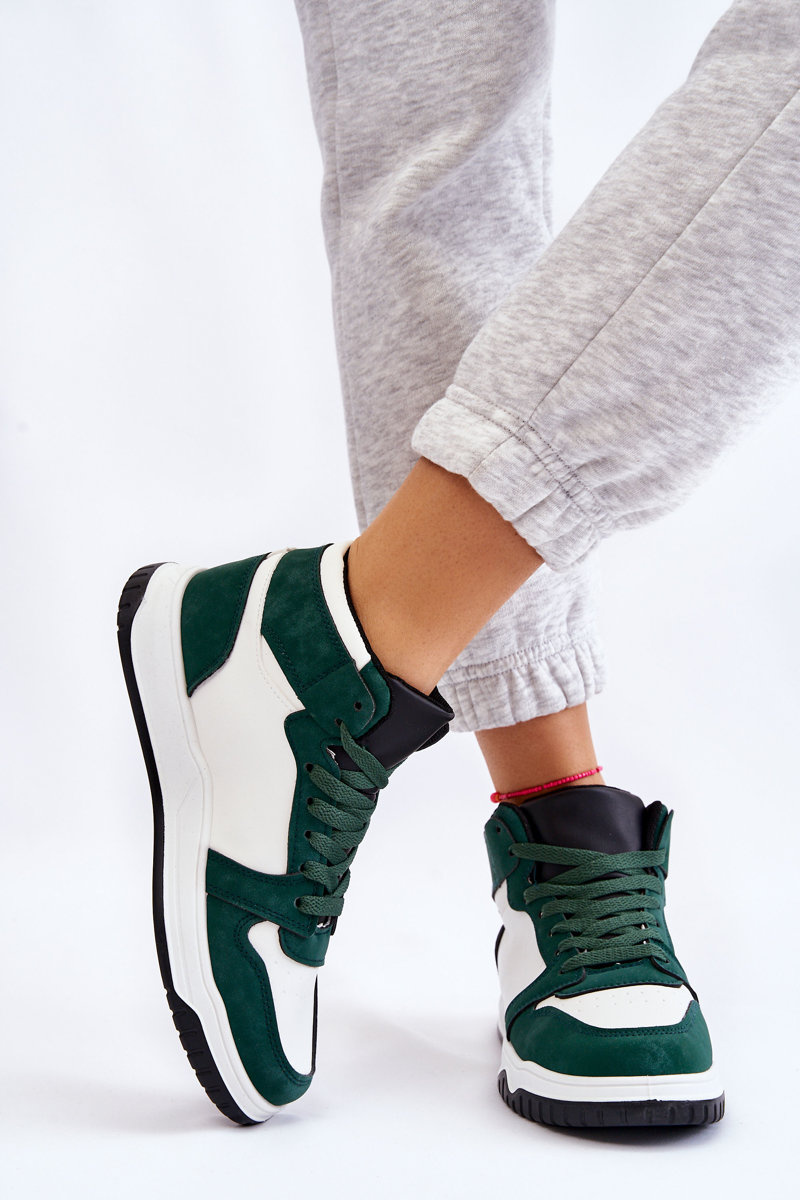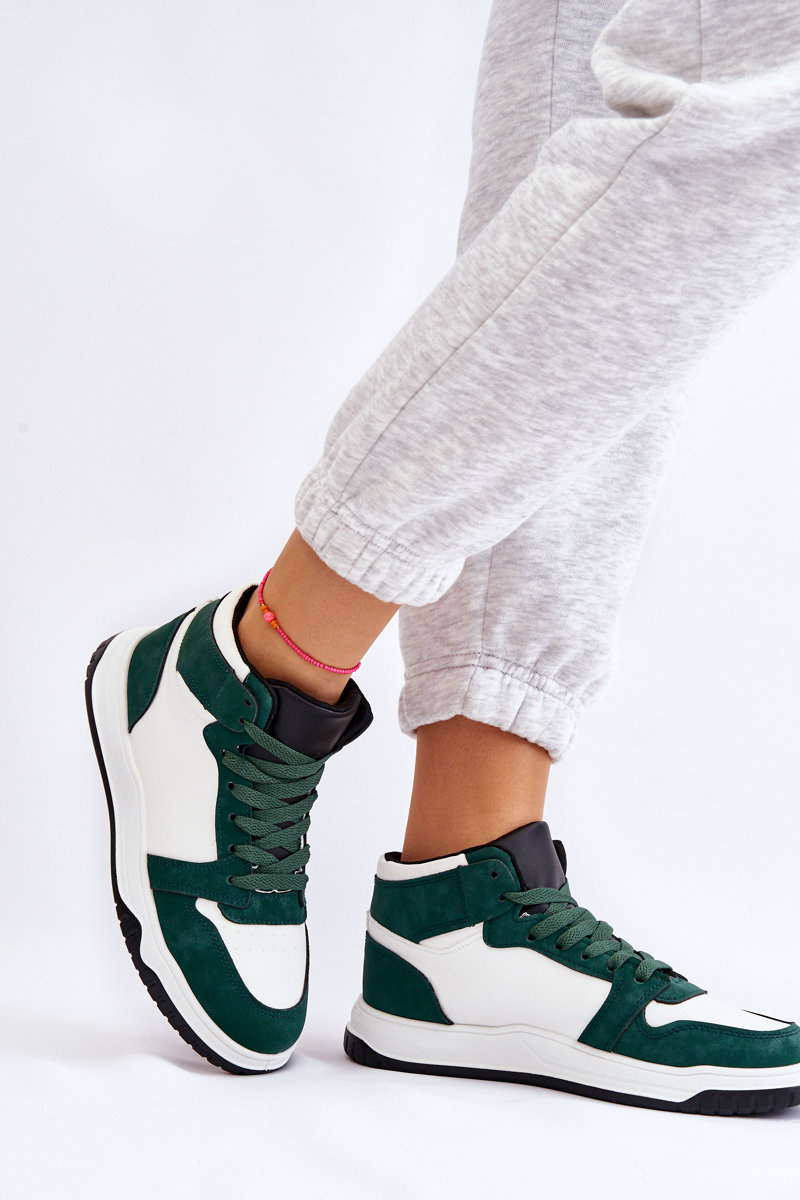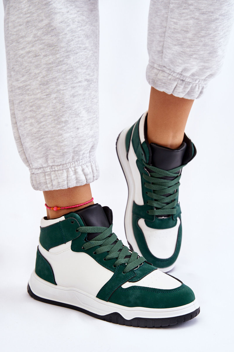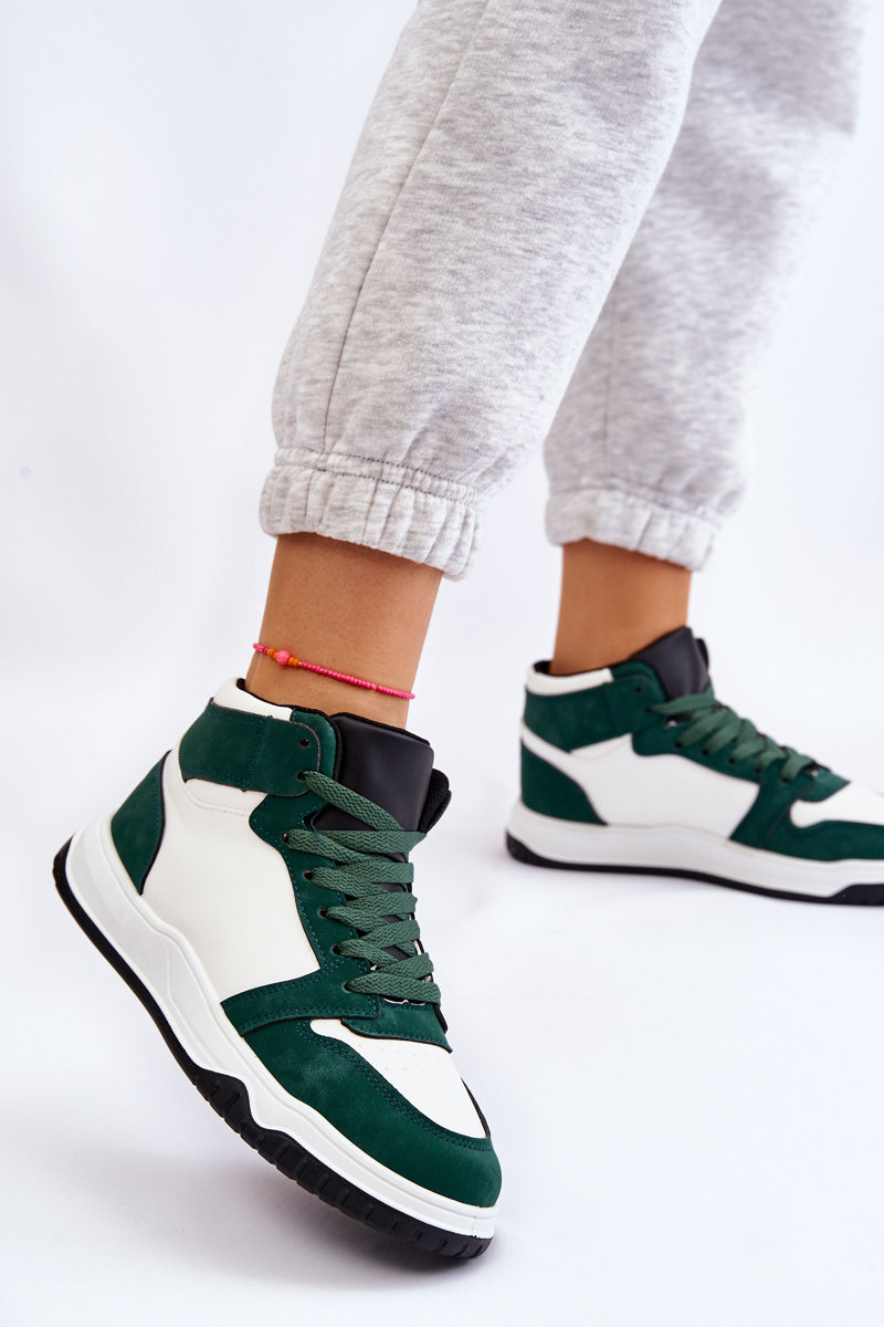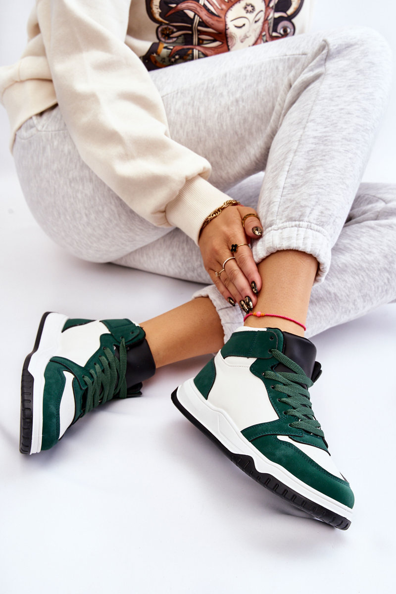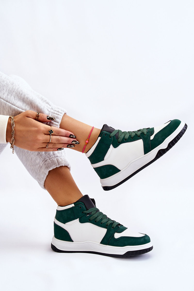Wysokie Damskie Buty Sportowe Trampki Biało-Zielone Rumour