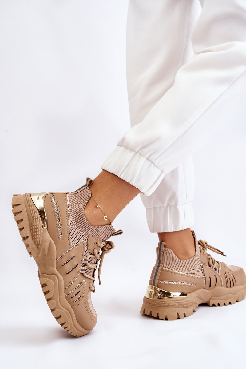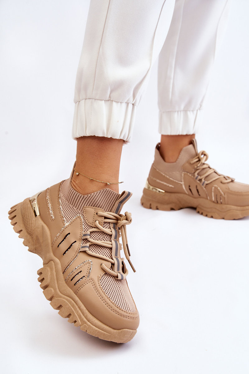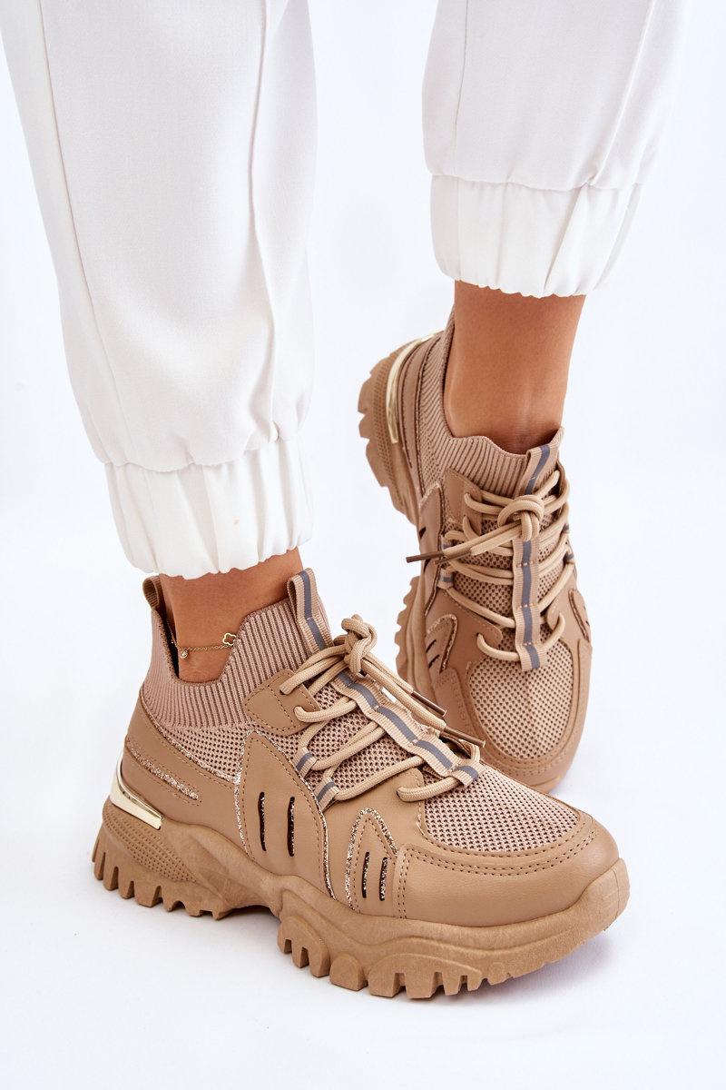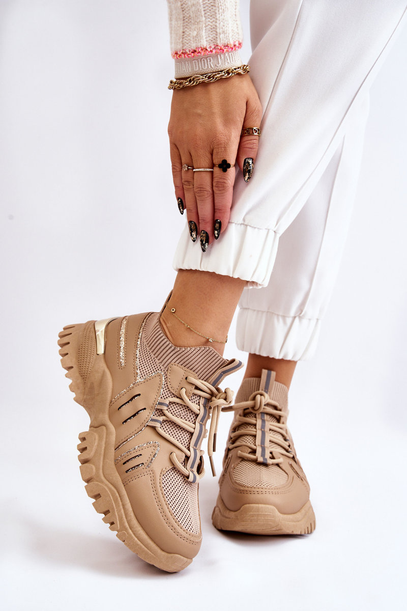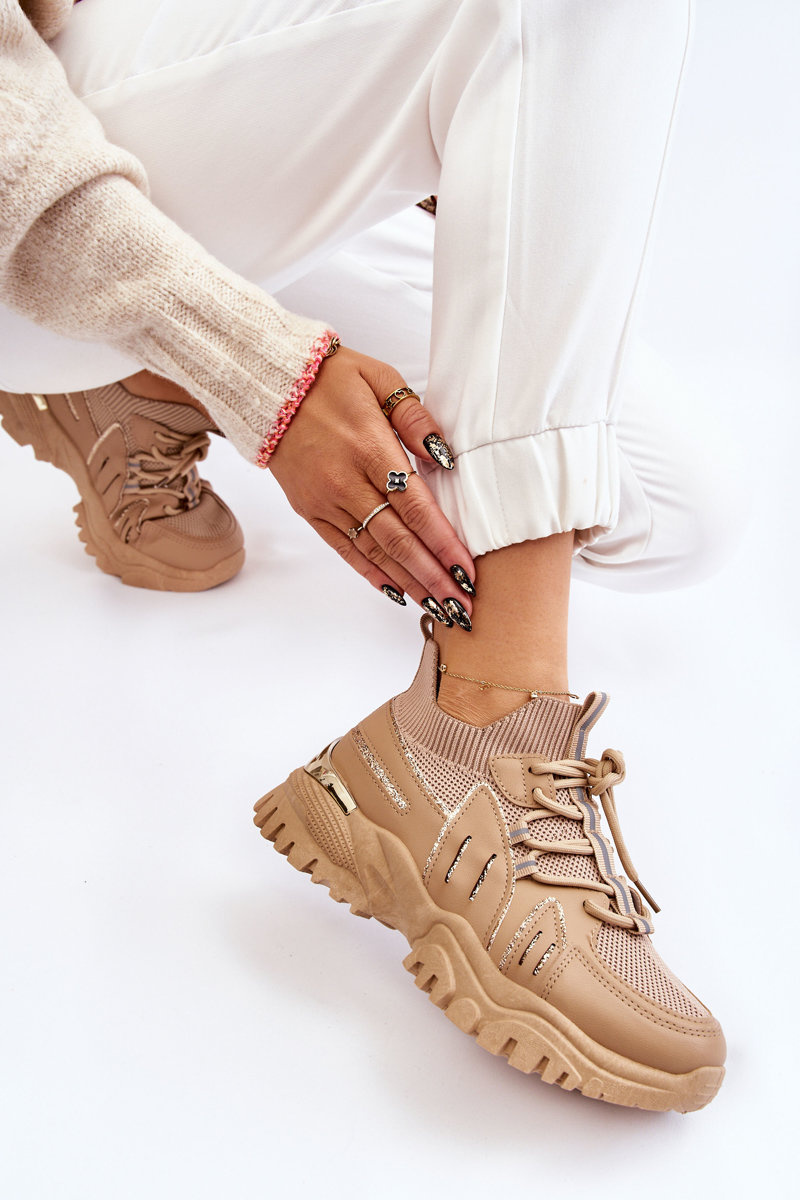 Damskie Buty Sportowe Skarpetkowe Wsuwane Beżowe Berna