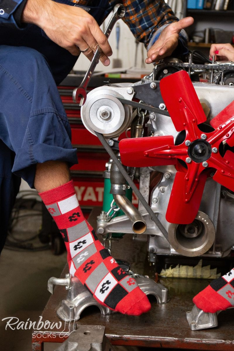 Który mężczyzna nie chciał w dzieciństwie zostać mechanikiem samochodowym? Jeśli jesteś tym, któremu się to udało, to właśnie znalazłeś skarpetki w sam raz do pracy. Jeżeli Twoje marzenie przerodziło się w hobby uprawiane w garażu, te modne skarpetki pomogą Ci przekazać pasję Twojemu nastoletniemu synowi. A jeśli dopiero chciałbyś zacząć przygodę z dłubaniem pod maską, ale nie wiesz, jak najbezpieczniej zrobić pierwszy krok, rozpocznij od założenia tych skarpet. Nimi na pewno nie pobrudzisz sobie rąk!