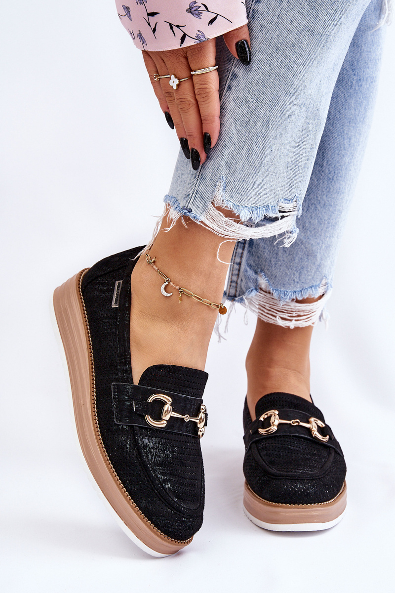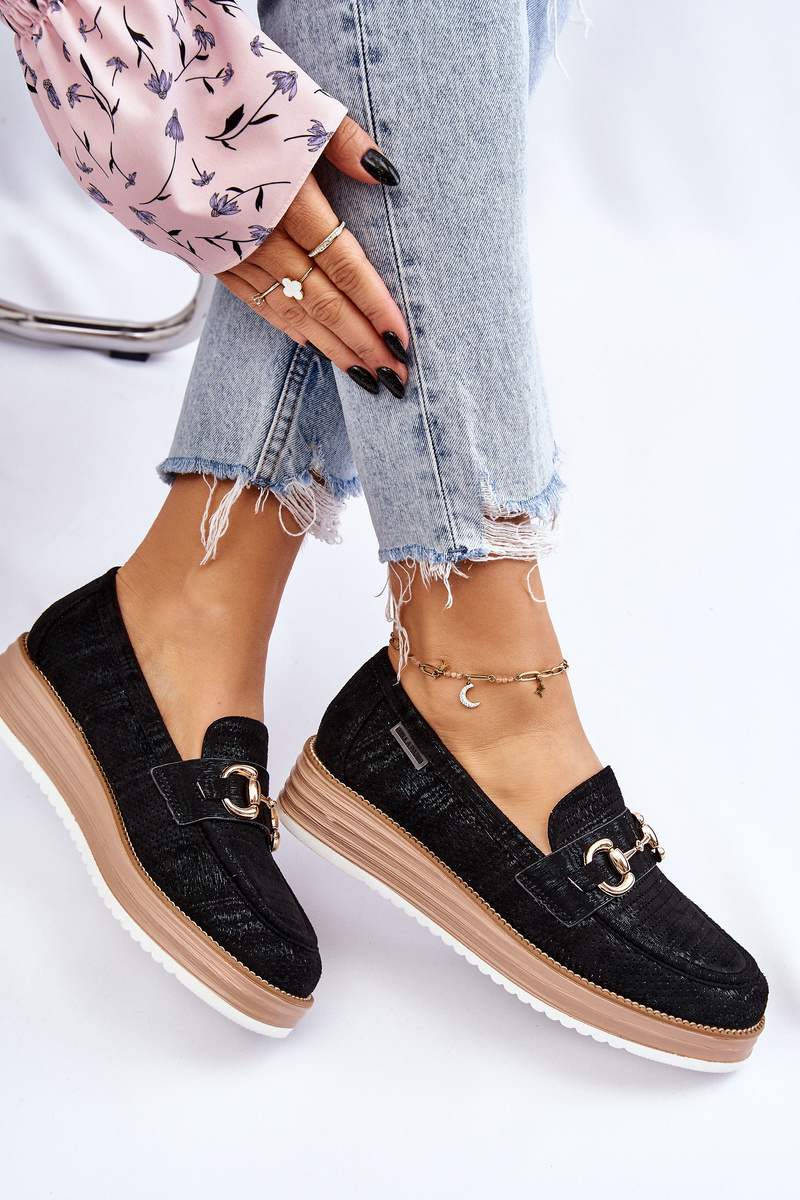Damskie Mokasyny Na Platformie Czarne Danny