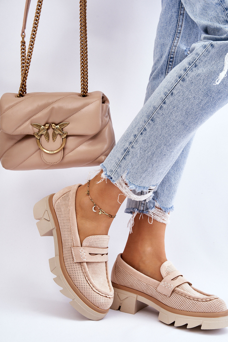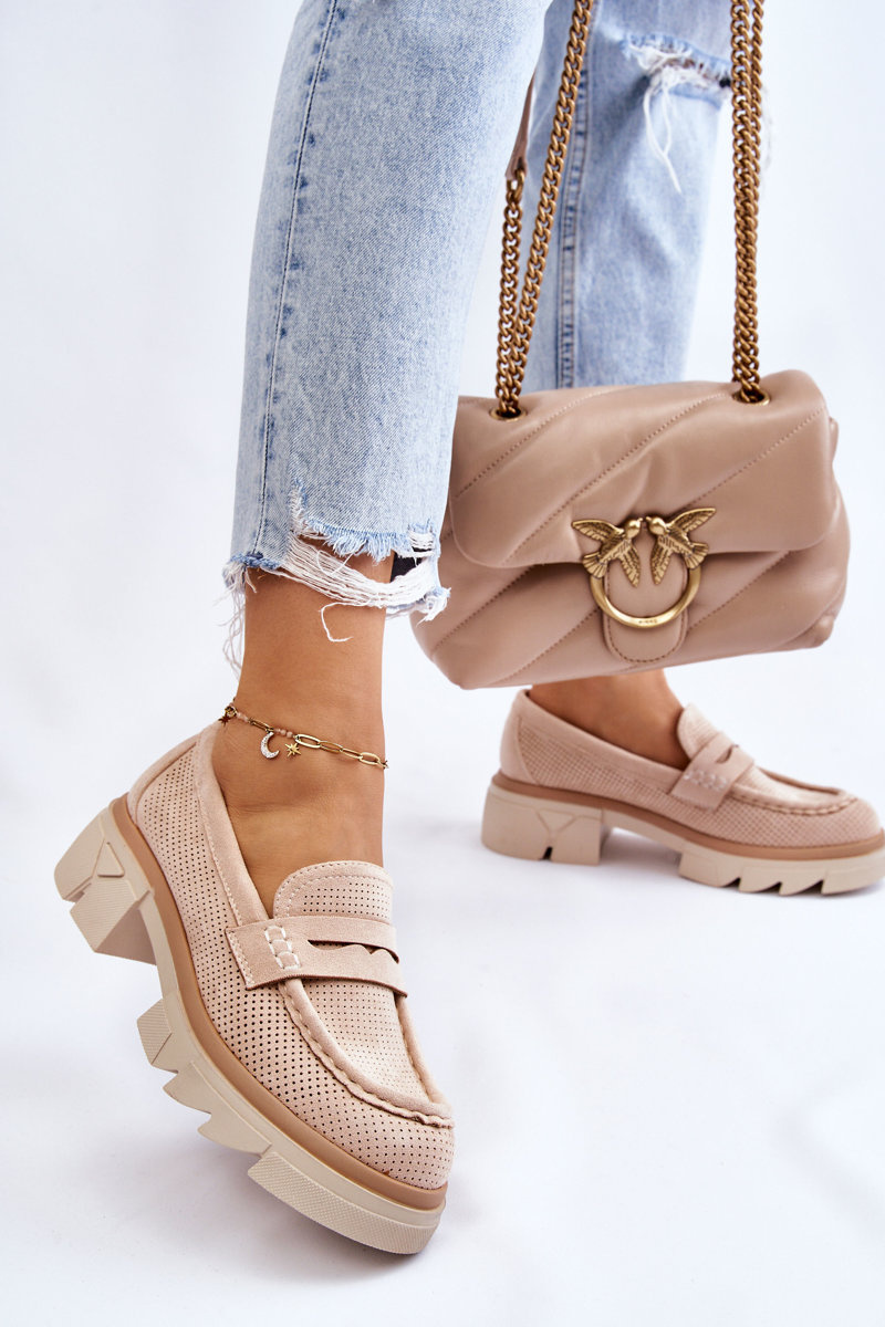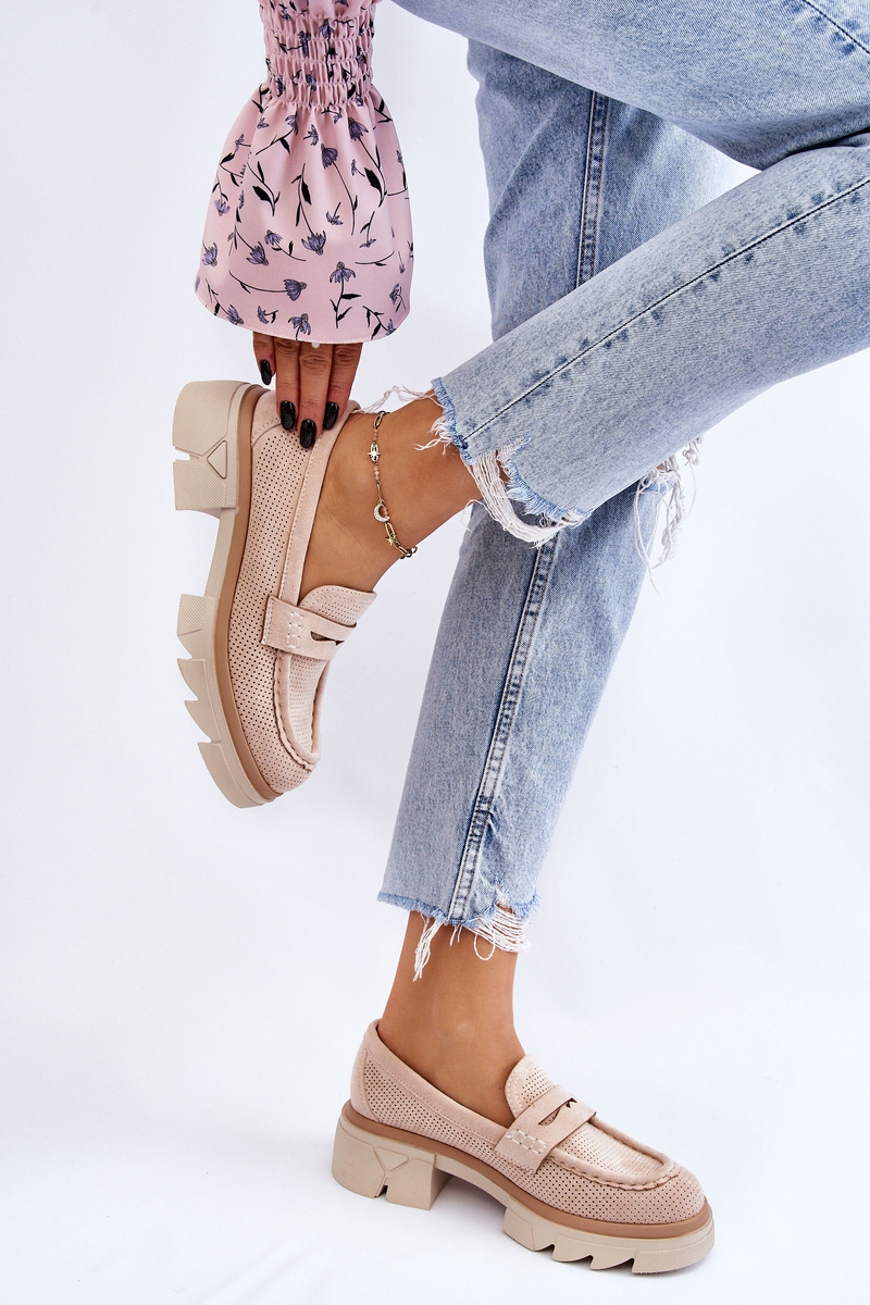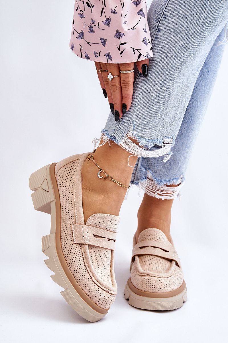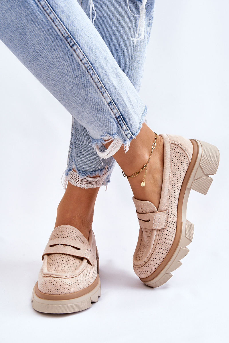 Damskie Półbuty Mokasyny Na Płaskim Obcasie Beżowe Fletcher