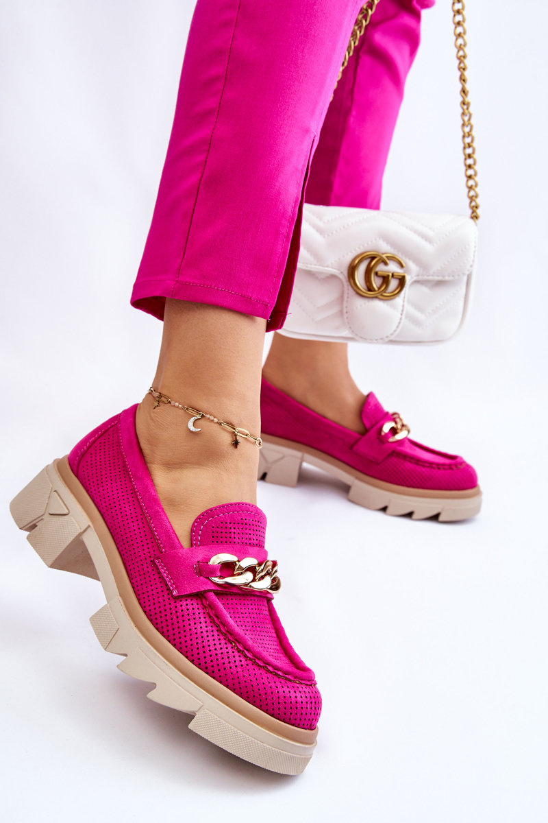 Damskie Półbuty Mokasyny Z Łańcuchem Fuksja Luella