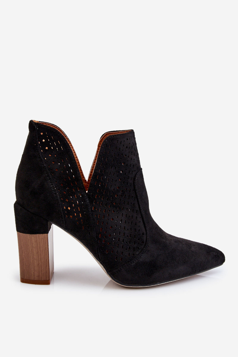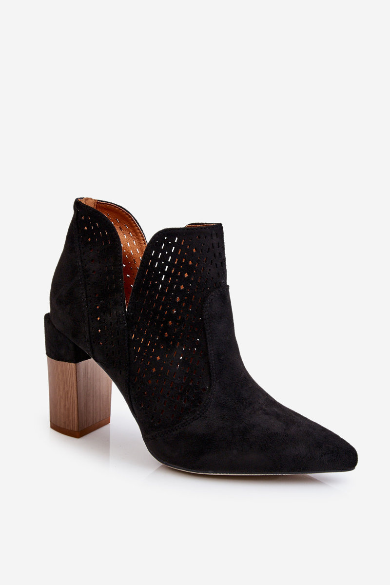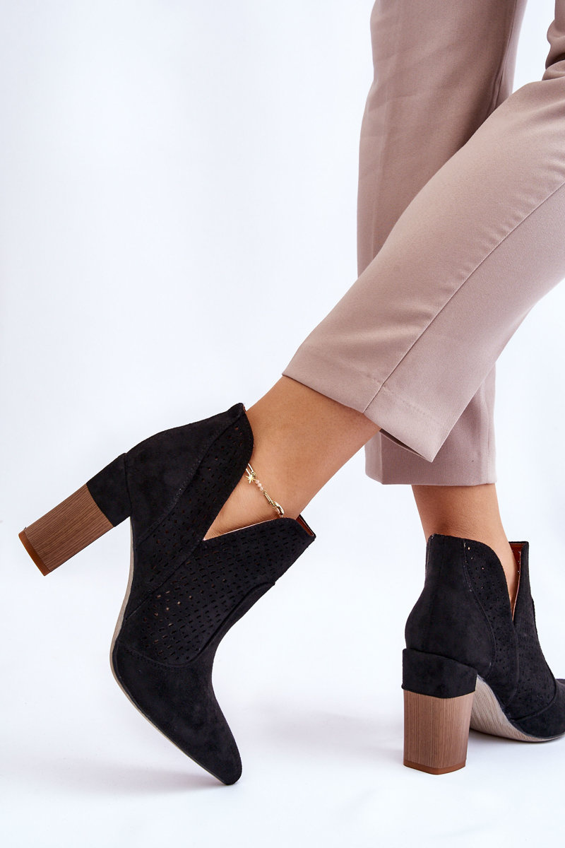Modne Zamszowe Ażurowe Botki Na Obcasie Czarne Genevi