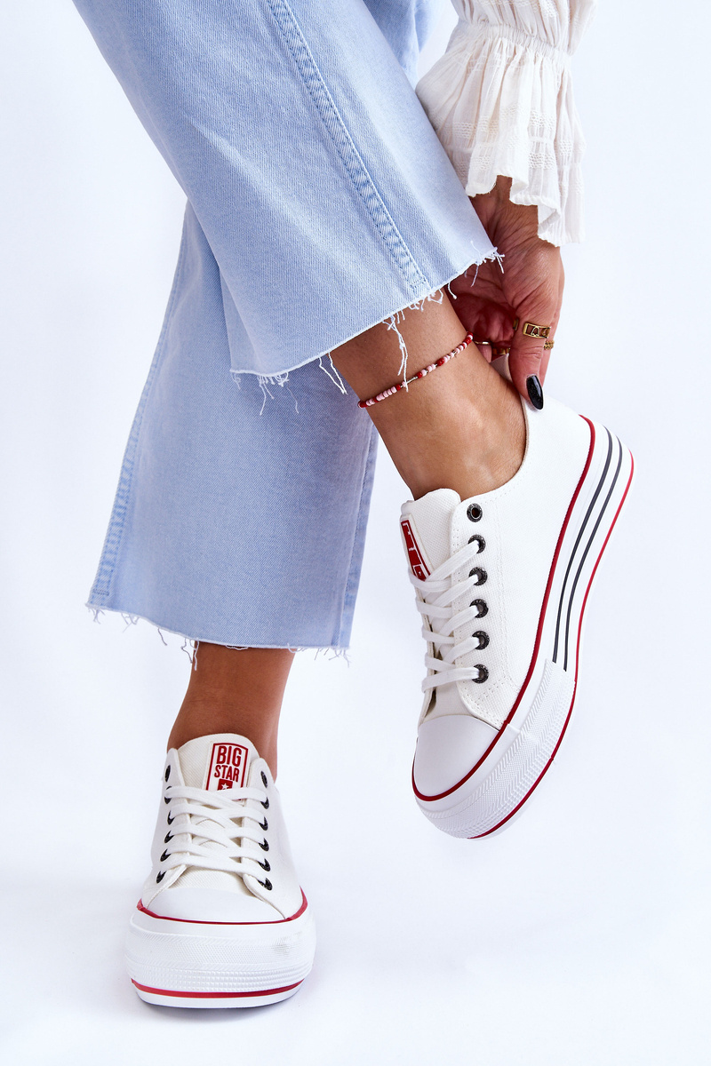 Trampki damskie zostały wykonane z materiału tekstylnego. Model klasycznie sznurowany. Buty zostały osadzone na masywnej, gumowej platformie z antypoślizgową podeszwą. Materiałowa wkładka zapewni komfort podczas użytkowania, a usztywniany zapiętek zapewni odpowiednią stabilizację stopy. Model ten świetnie sprawdzi się w wielu codziennych stylizacjach.Przy wyborze rozmiaru prosimy sugerować się tabelą rozmiarów.