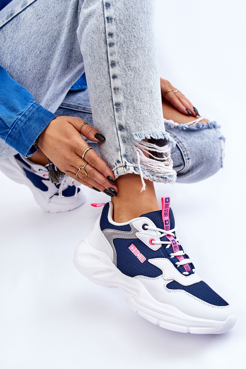 Damskie Lekkie Sportowe Buty Big Star LL274376 Biało-Granatowe