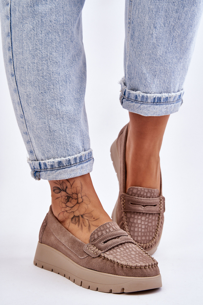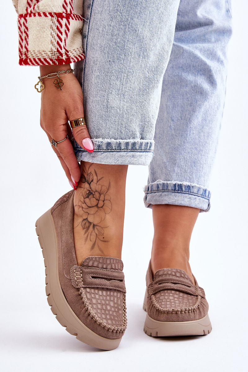 Zamszowe Mokasyny Na Platformie Ciemnobeżowe Lemar Milana