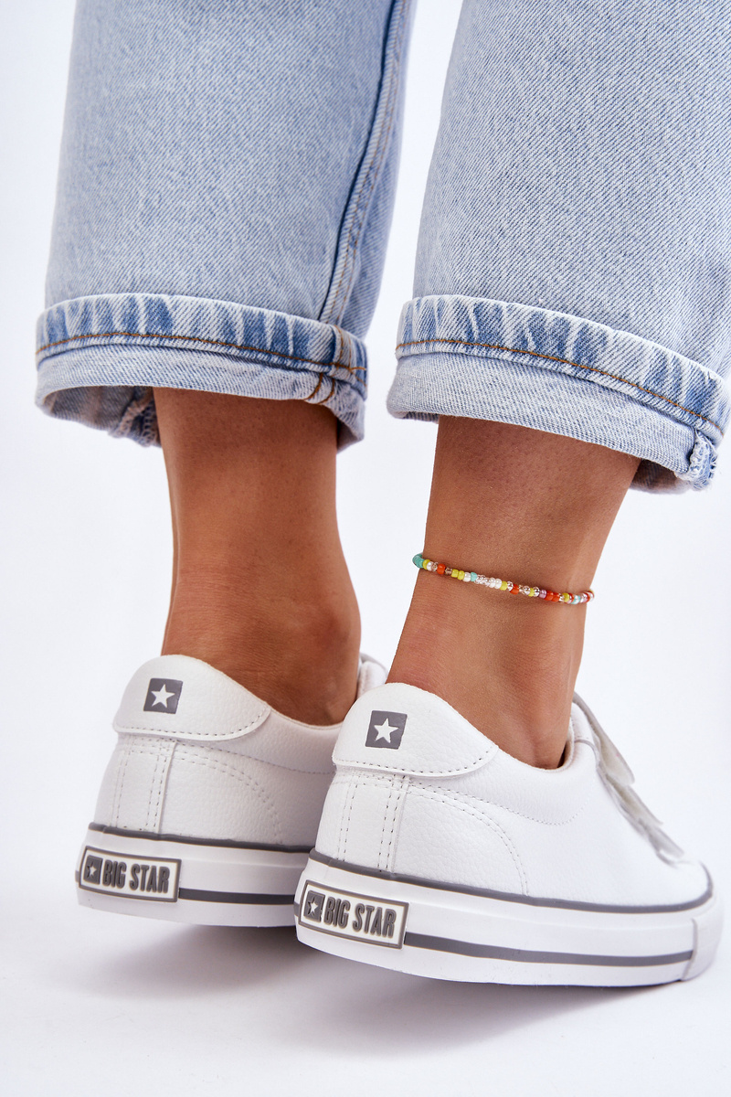 Klasyczny model damskich trampek z zapinaniem na rzepy. Model ten posiada miękką wkładkę z tkaniny, która zapewnia wygodę podczas użytkowania. Trampki są wykonane z eko skóry. Tenisówki zostały osadzone na platformie z podeszwą z gumowego tworzywa, która jest antypoślizgowa. Świetny model na co dzień, który powinnaś mieć w swojej szafie! Przy wyborze rozmiaru prosimy sugerować się tabelą rozmiarów.