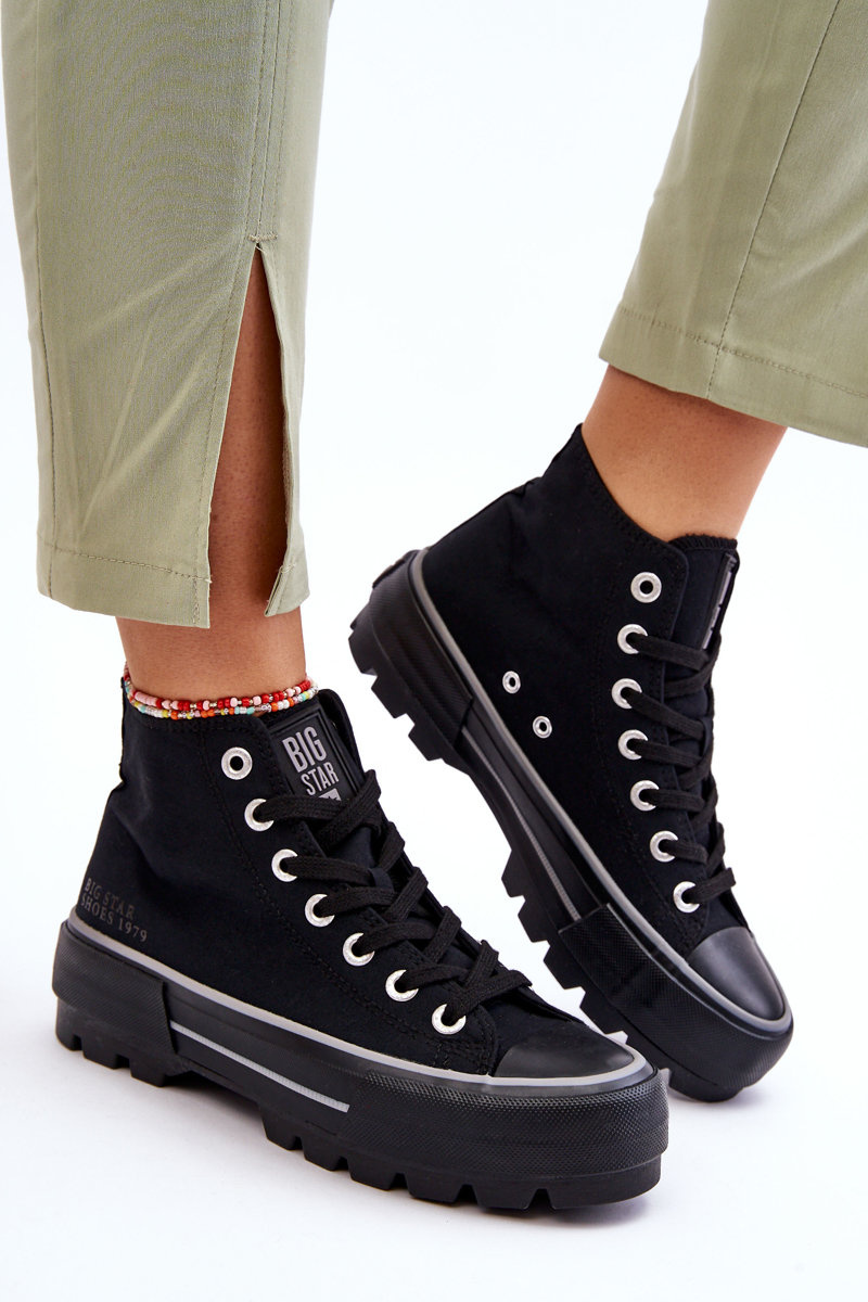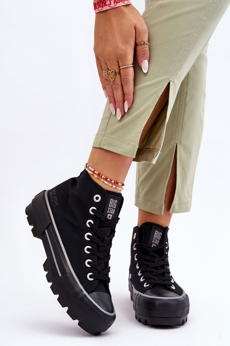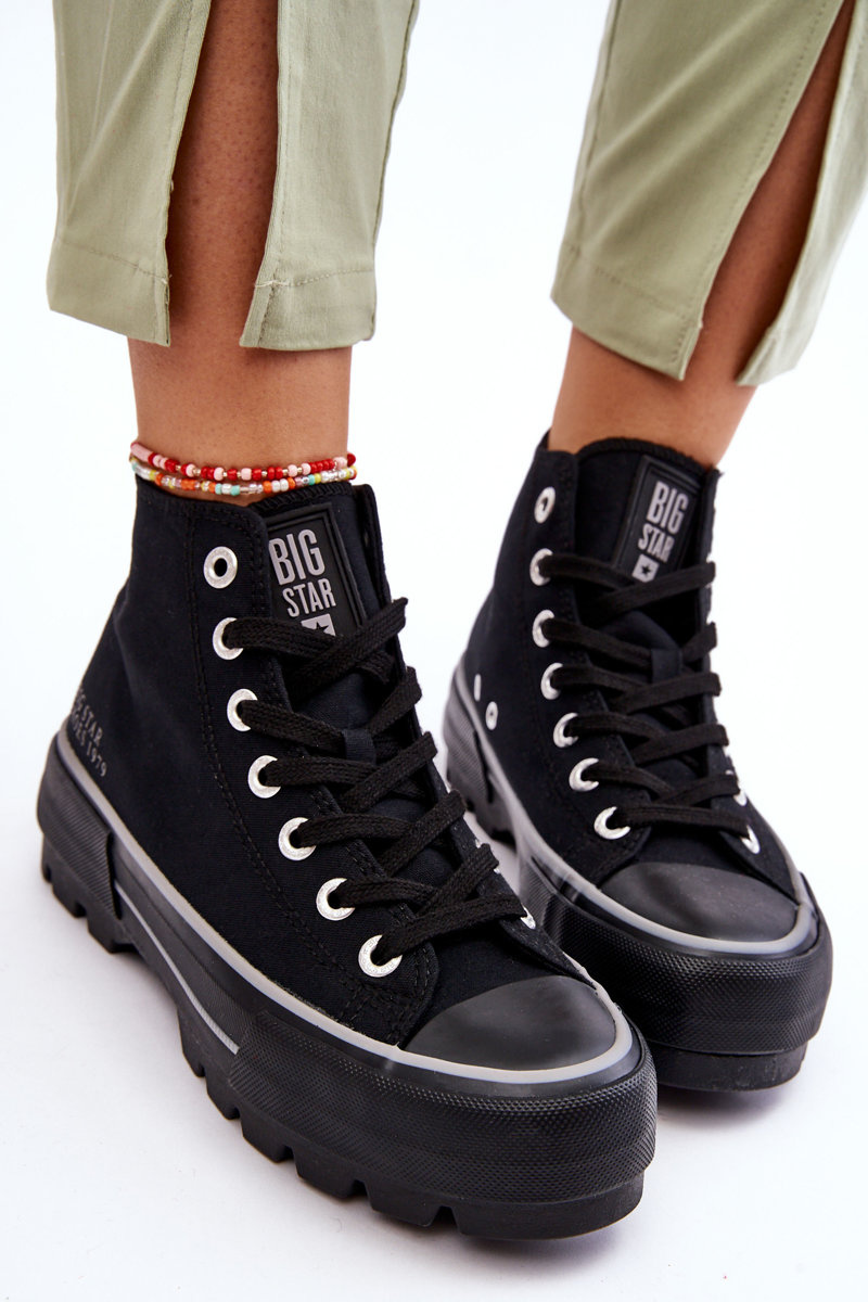 Wysokie Materiałowe Trampki Na Platformie Big Star LL274155 Czarne