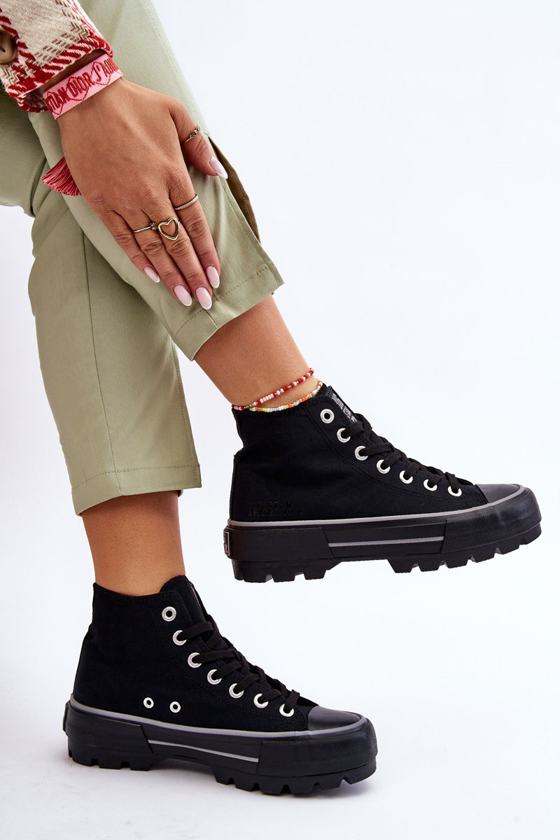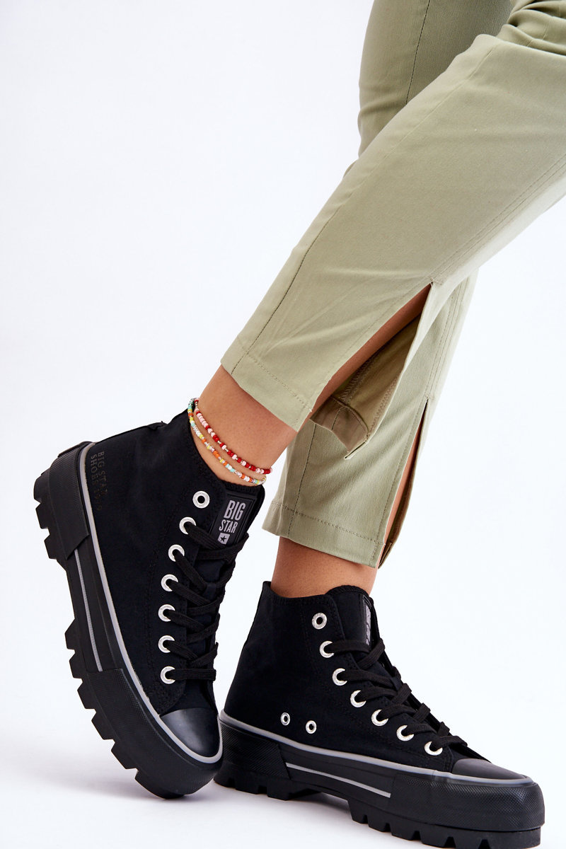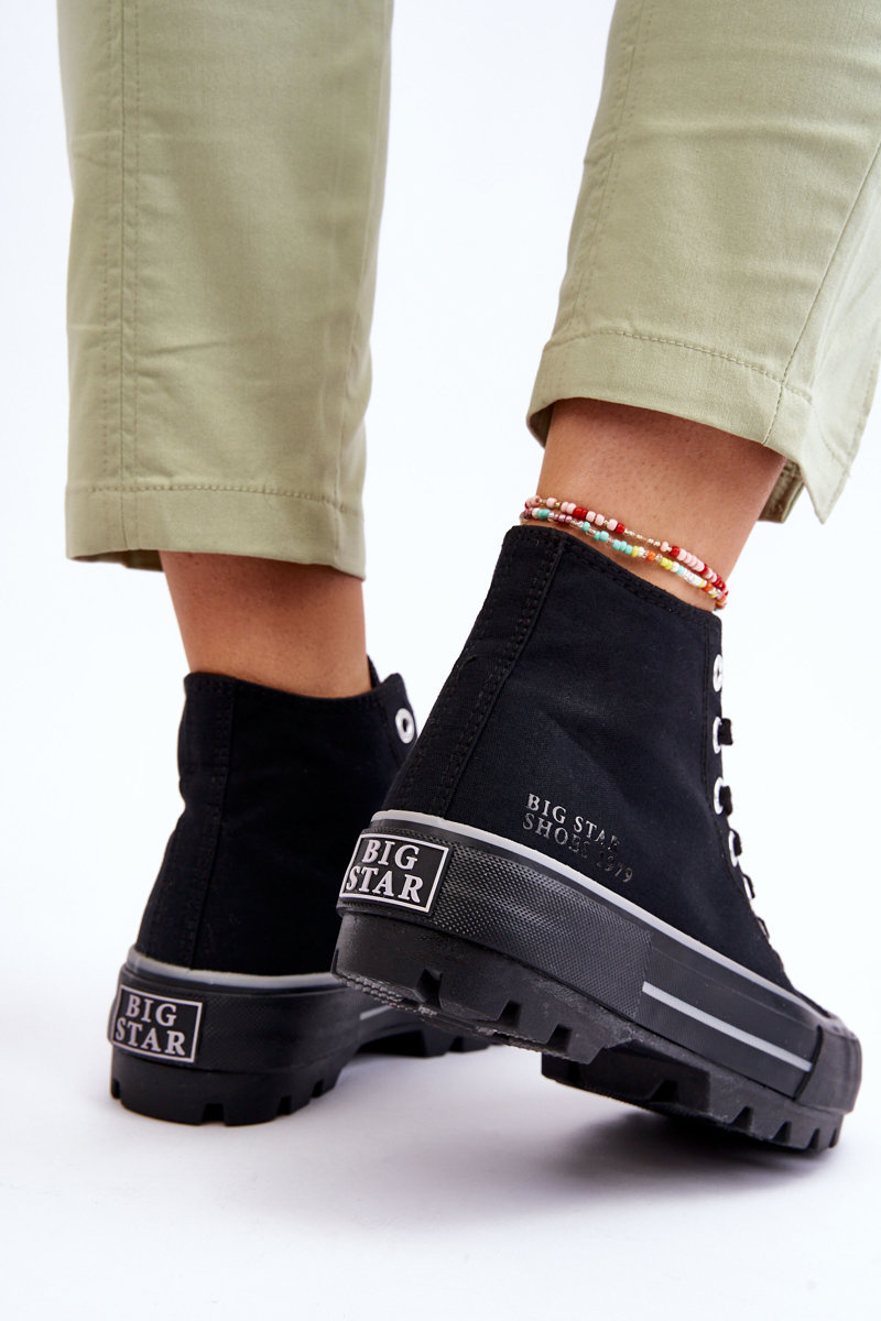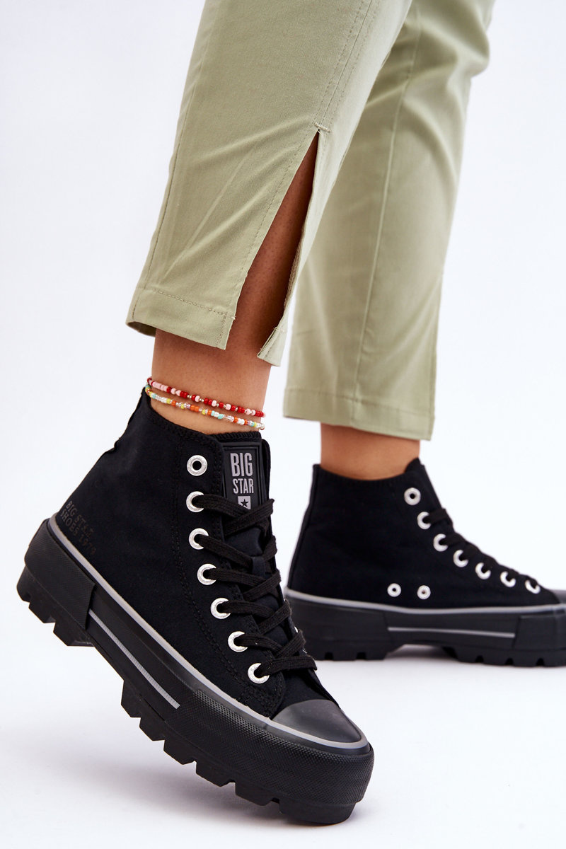 Wysokie Materiałowe Trampki Na Platformie Big Star LL274155 Czarne
